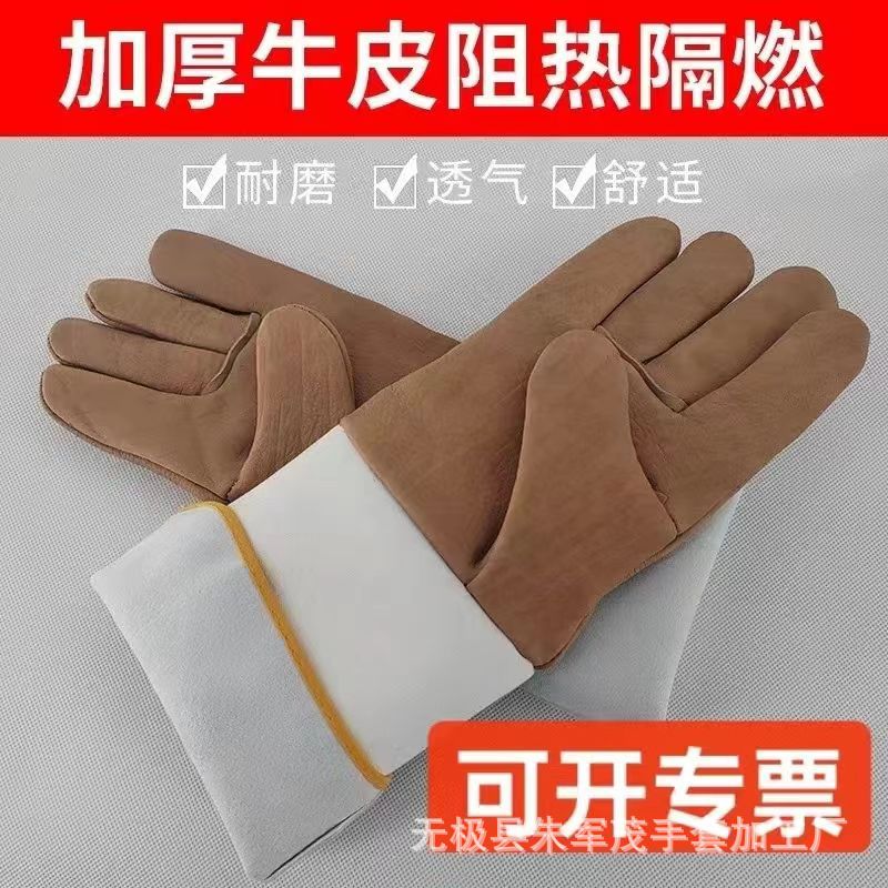 용접공 장갑 헤드 레이어 소 가죽 드라이버 장갑 짧은 전체 가죽 반 용접 장갑 노동 보호 장갑 도매