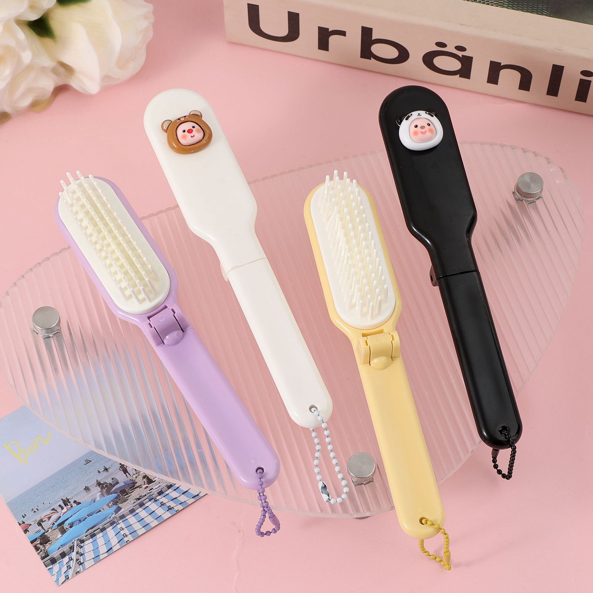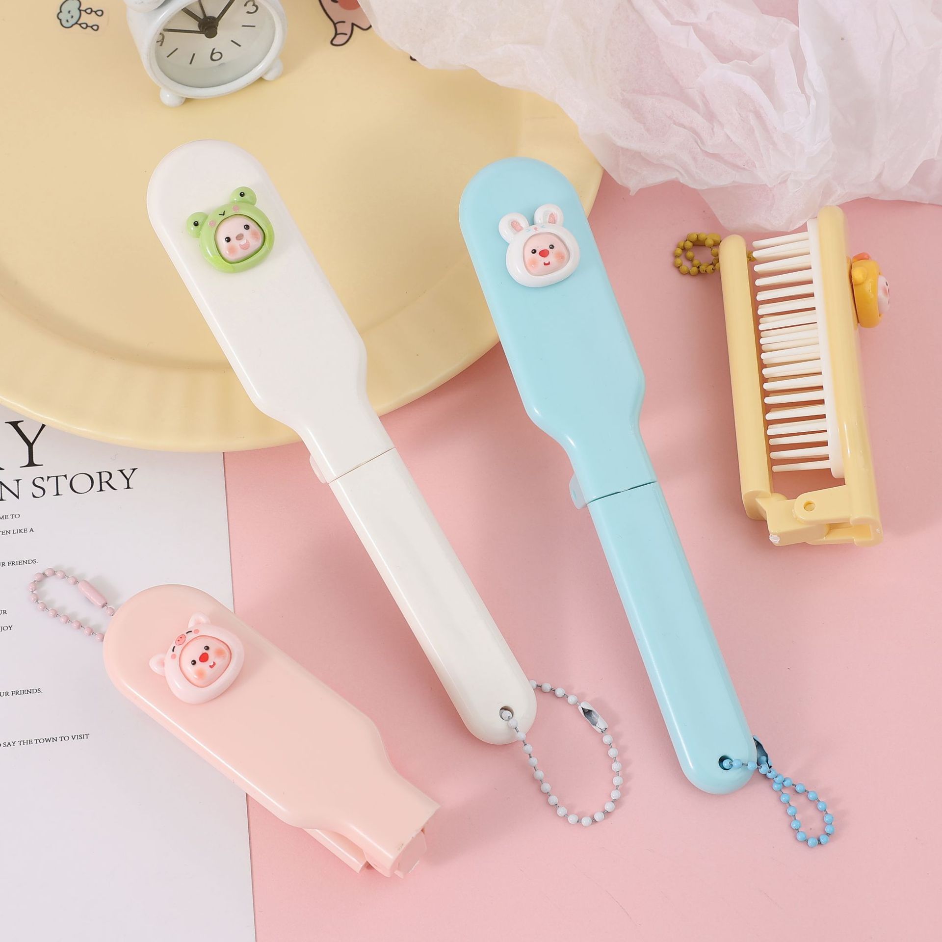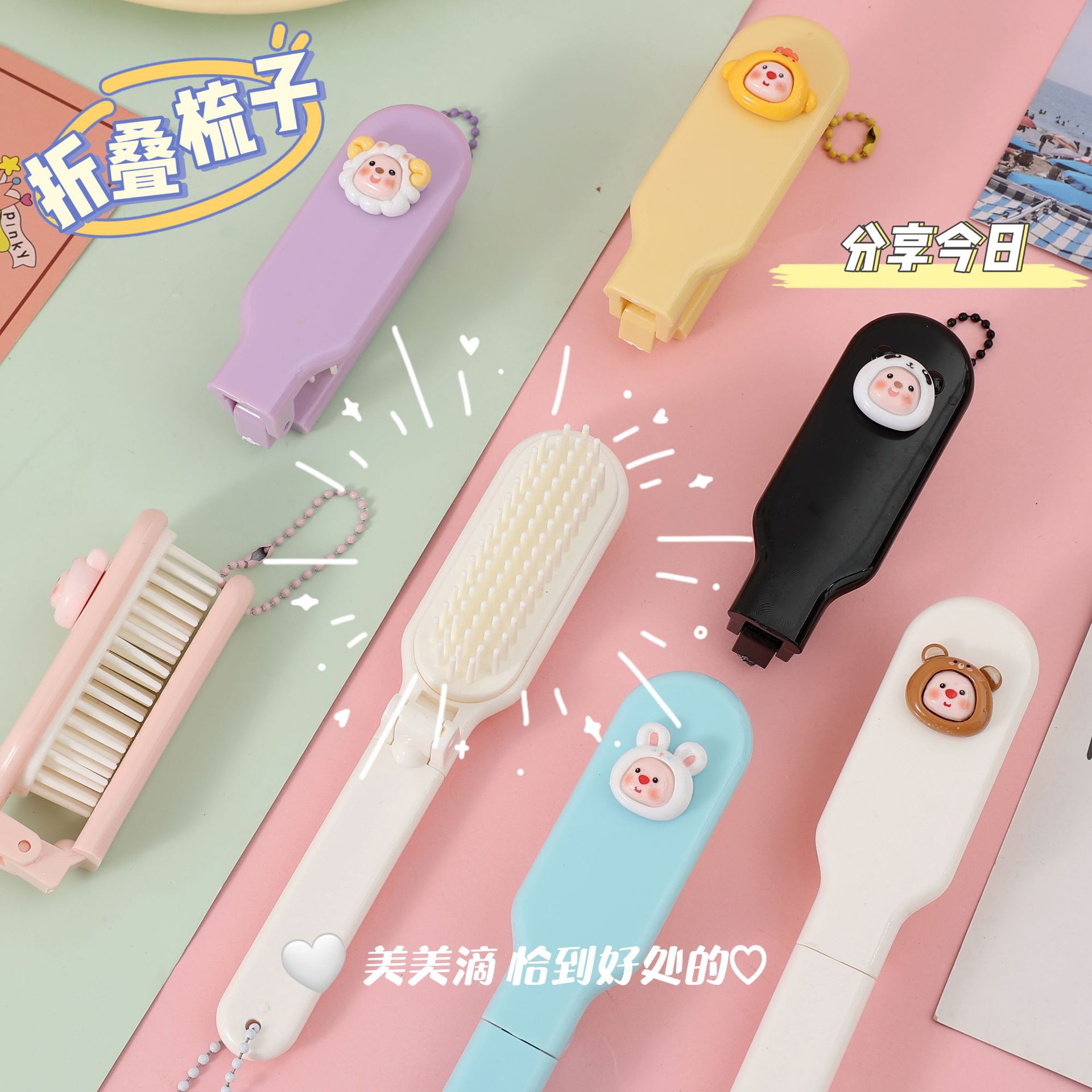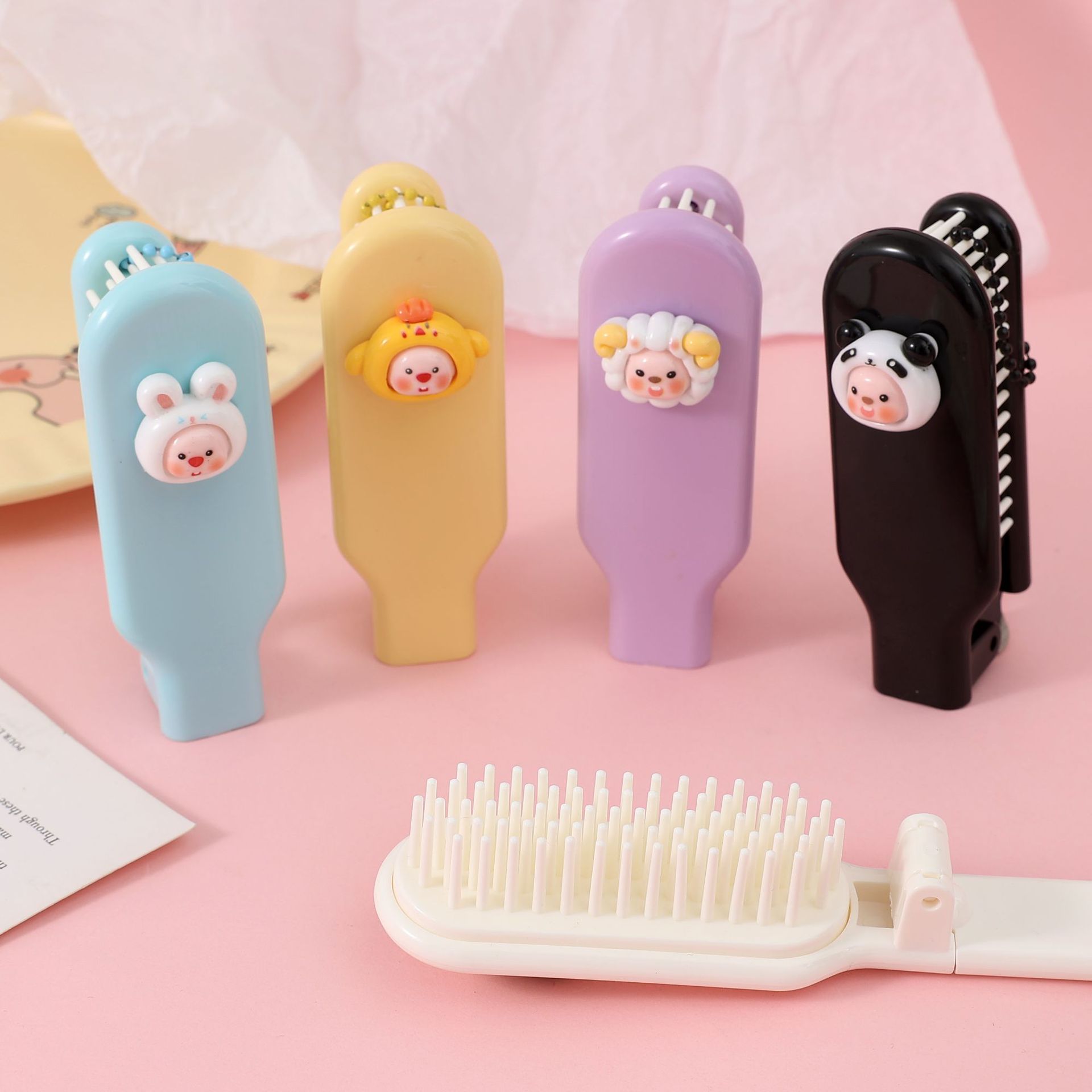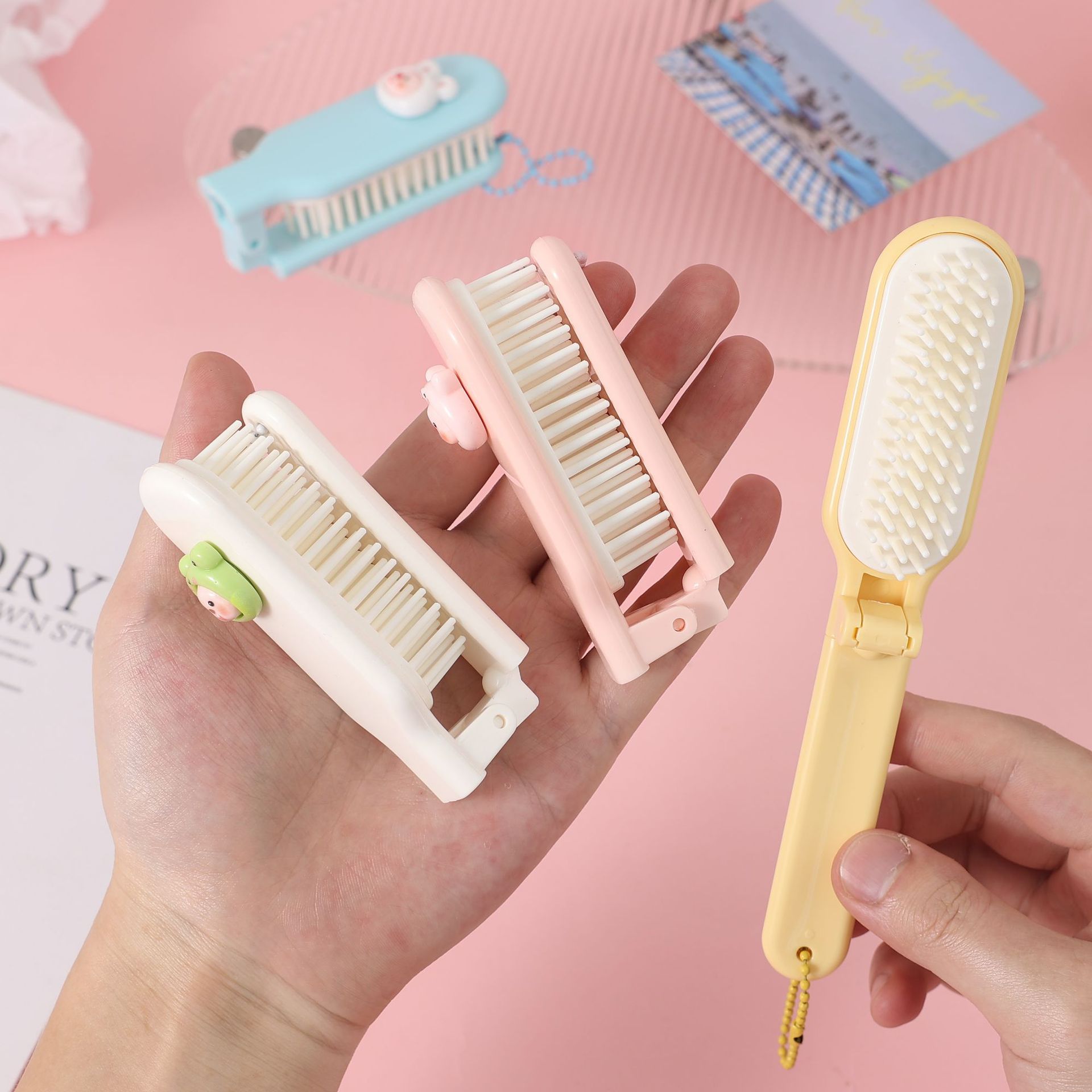 귀여운 부드러운 치아 미세 치아 접는 빗 2-in -1 휴대용 여행 포켓 빗 소녀의 머리 빗스토어 가기