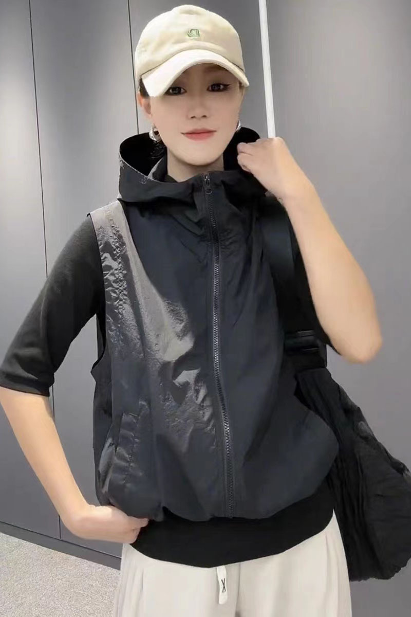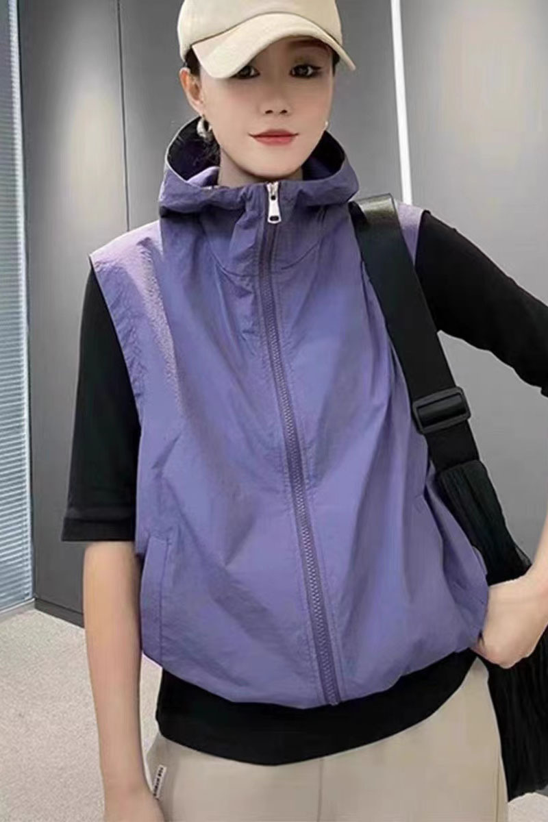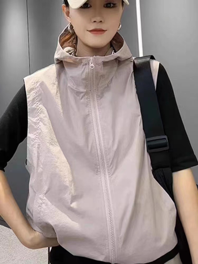 후드 민소매 통기성 자켓 조끼 자켓 여성 봄, 여름 새로운 태양 보호 의류 다목적 캐주얼 탑 카디건