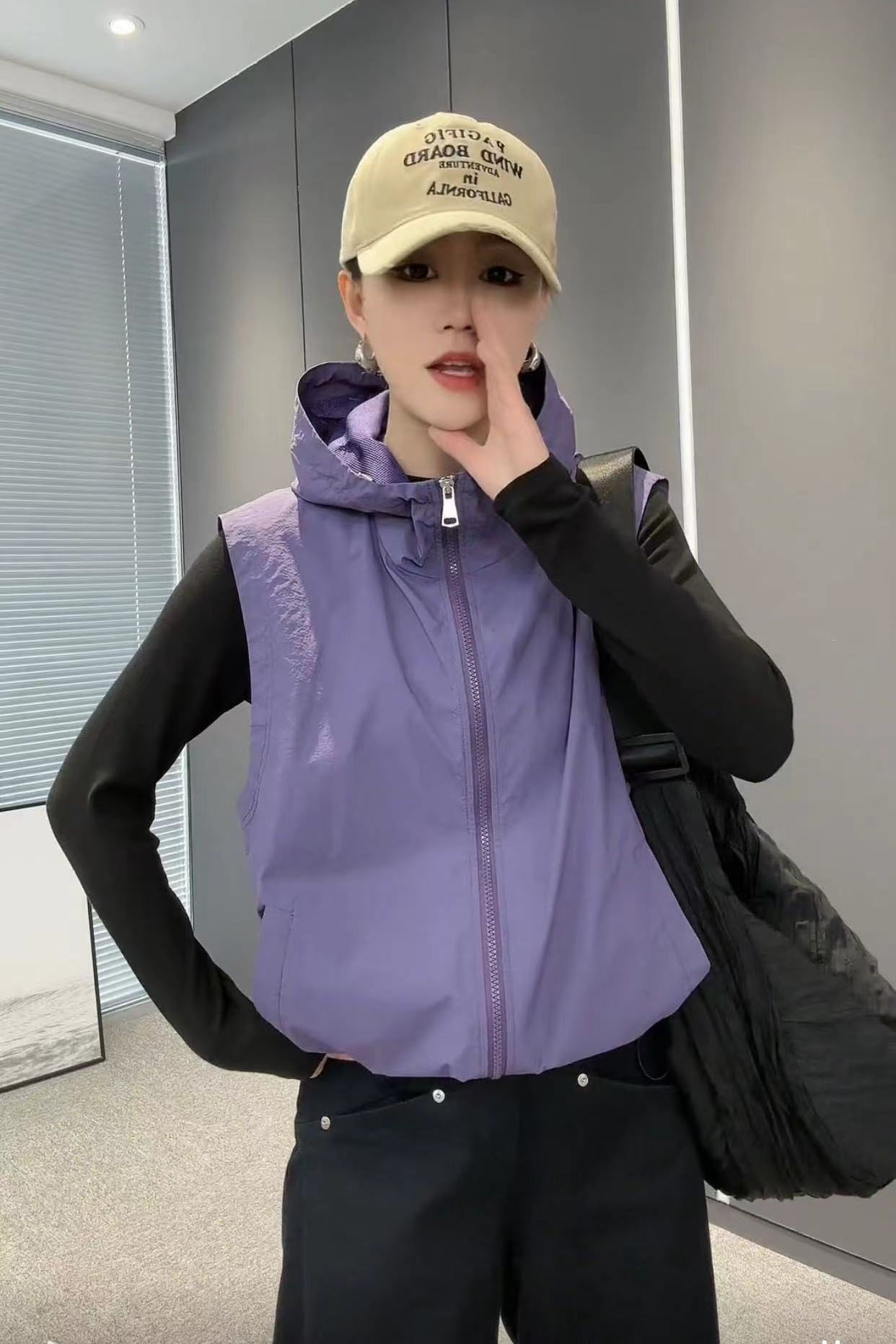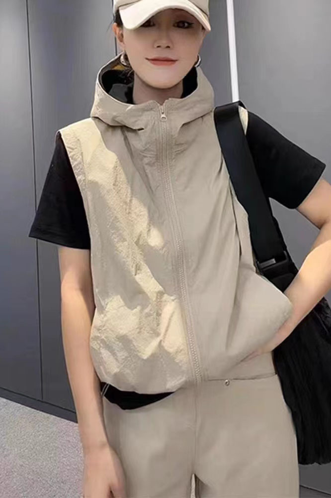 후드 민소매 통기성 자켓 조끼 자켓 여성 봄, 여름 새로운 태양 보호 의류 다목적 캐주얼 탑 카디건스토어 가기
