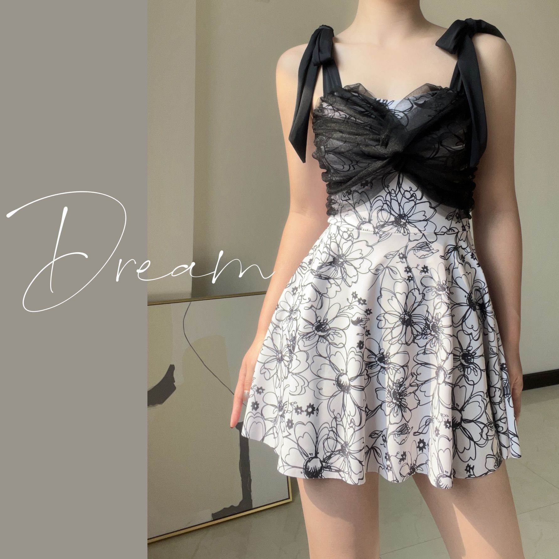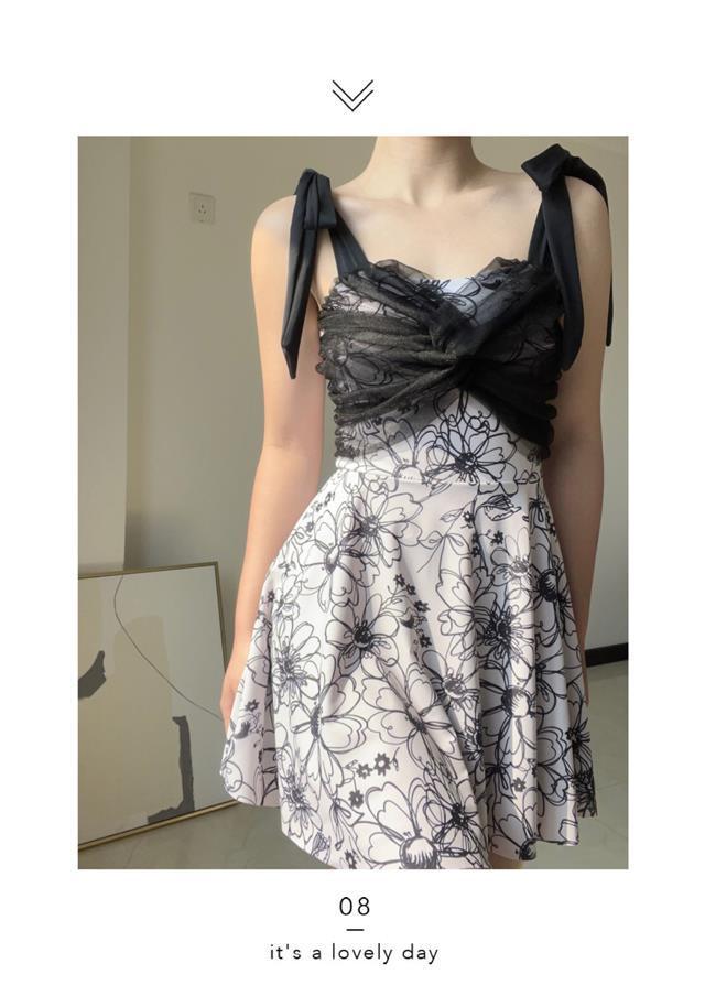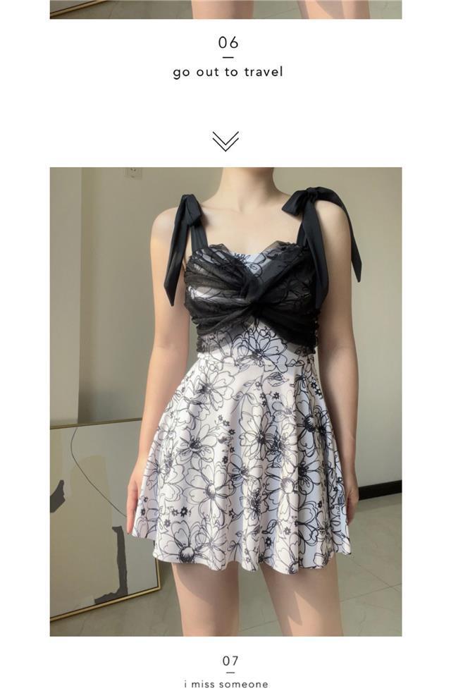 수영복 여성의 빠른 건조 메쉬 커버 스커트 스타일 보수적 인 고기 숨기기 슬리밍 수영복 온천 하이 엔드 대형 Ins 순수한 욕망스토어 가기