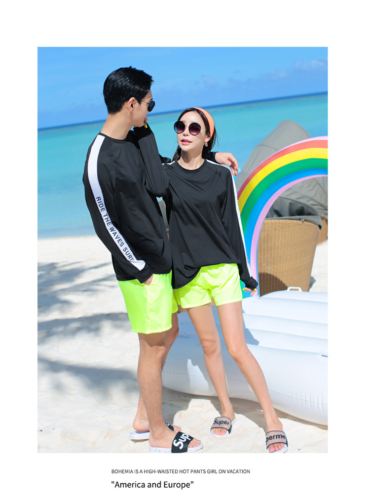 남자 긴팔 다이빙 세트 여자 스플릿 슬림 핏 해파리 서퍼 세트 가슴 패드 커플의 선 스크린 온천 수영복