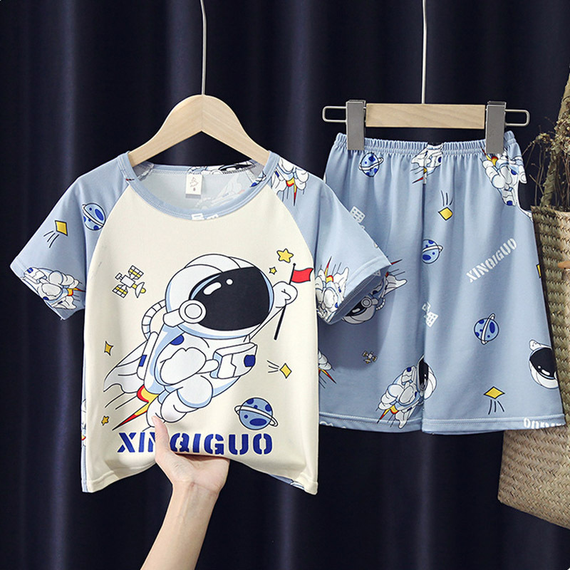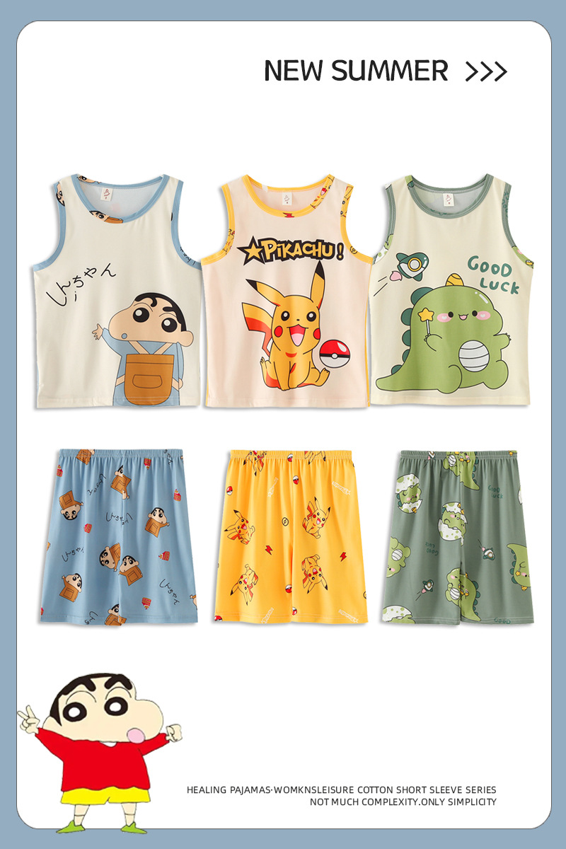 대외 무역 어린이 잠옷 소년 여름 얇은 조끼 짧은 커버 에어컨 홈 옷 소년 만화 잠옷 도매스토어 가기