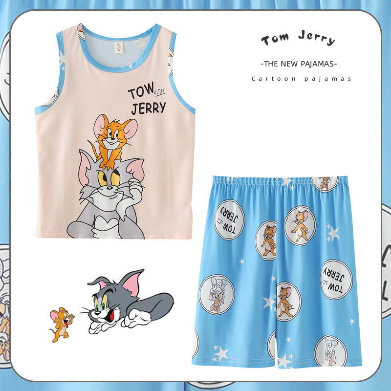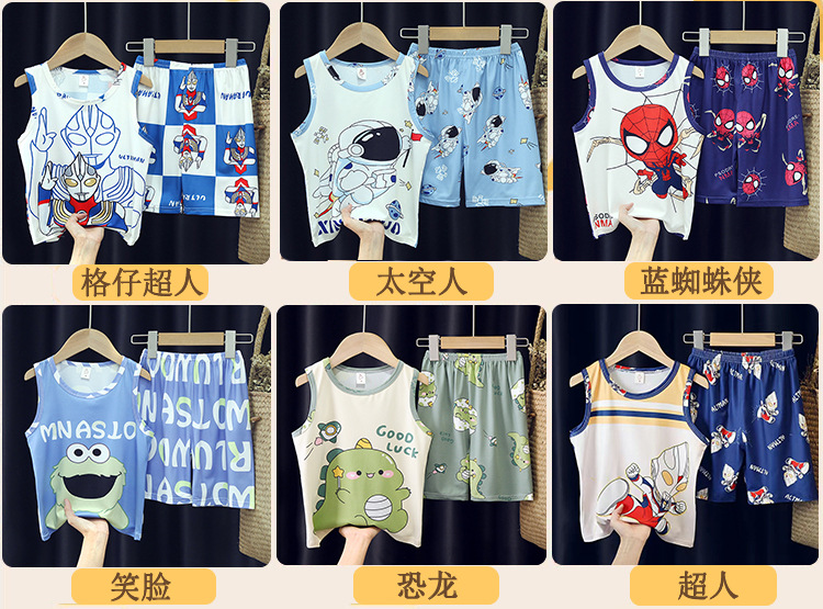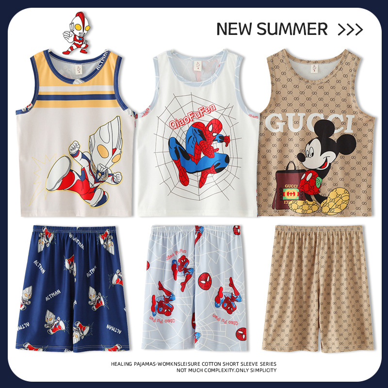대외 무역 어린이 잠옷 소년 여름 얇은 조끼 짧은 커버 에어컨 홈 옷 소년 만화 잠옷 도매