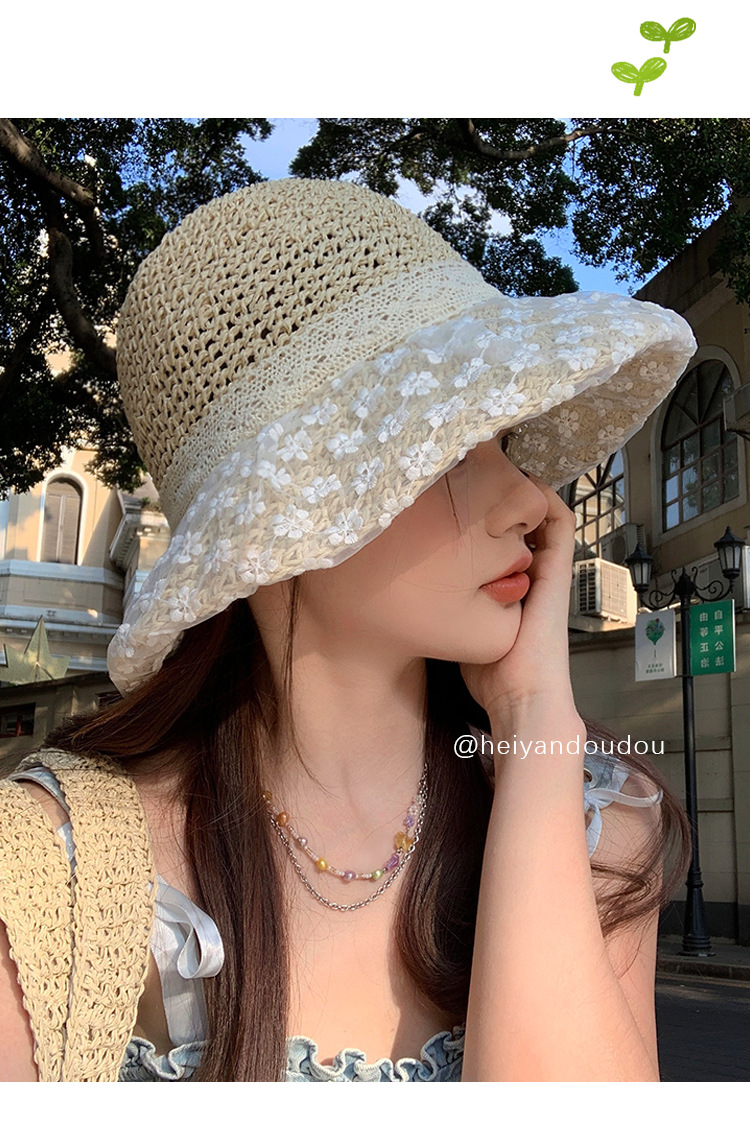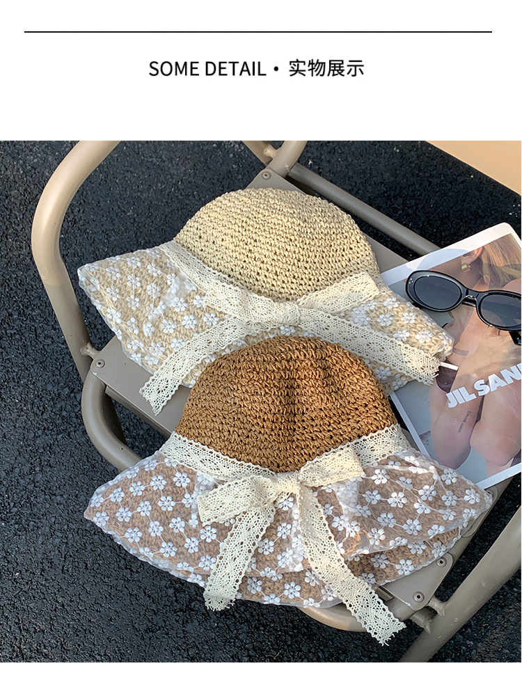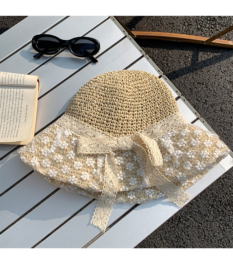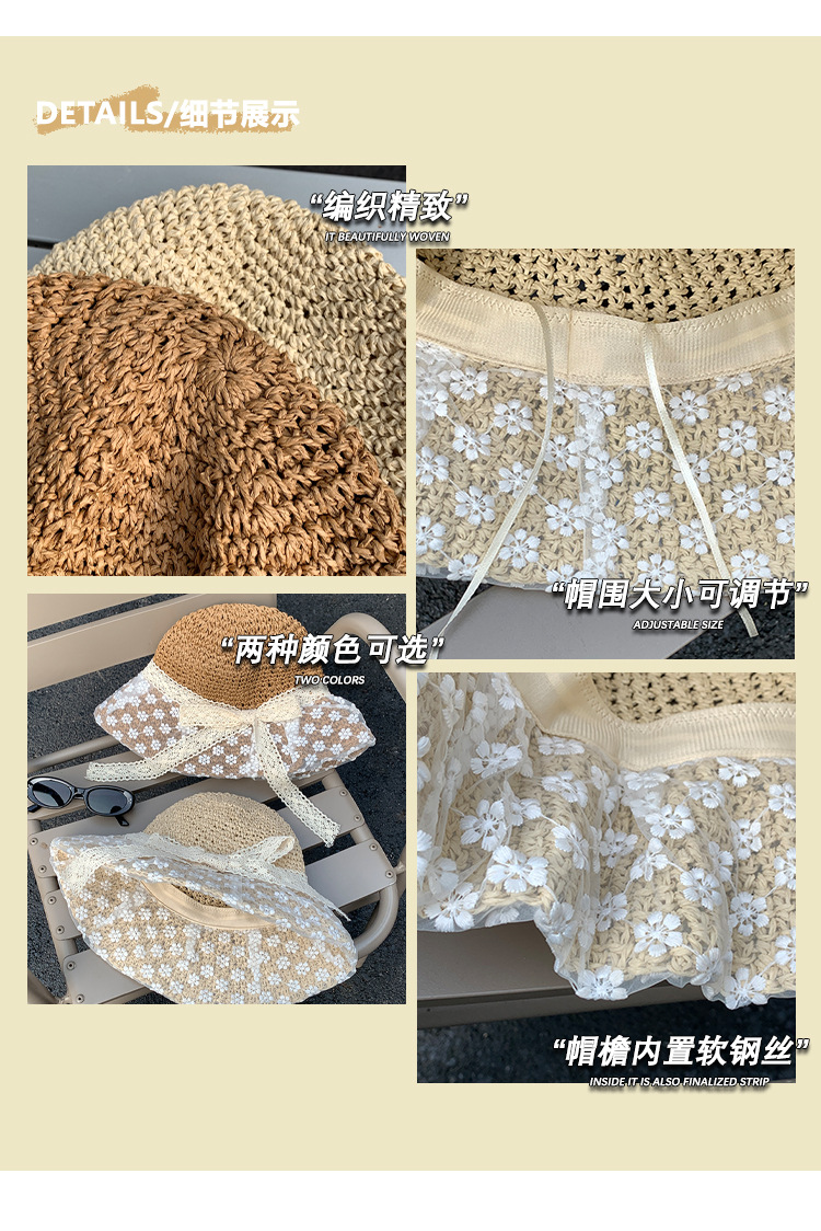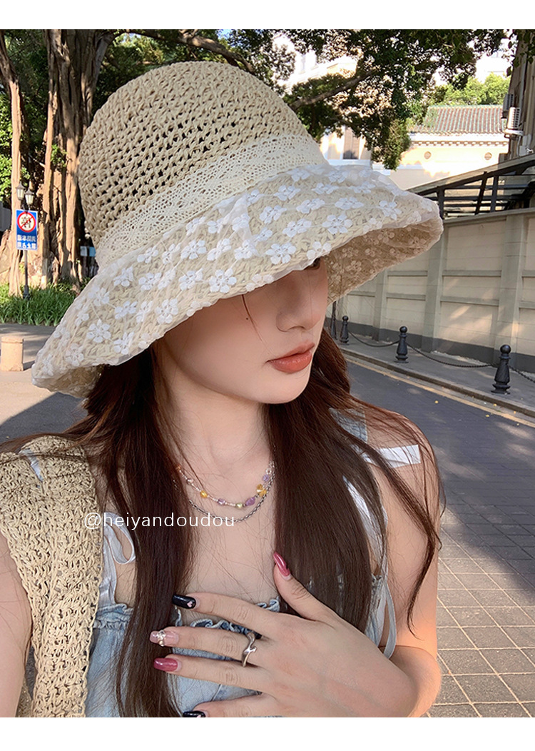 밀짚 모자 여성의 새로운 일본 스타일 신선한 스타일 레이스 밀짚 모자 여름 여행 선 스크린 모자 큰 브림 비치 햇살스토어 가기