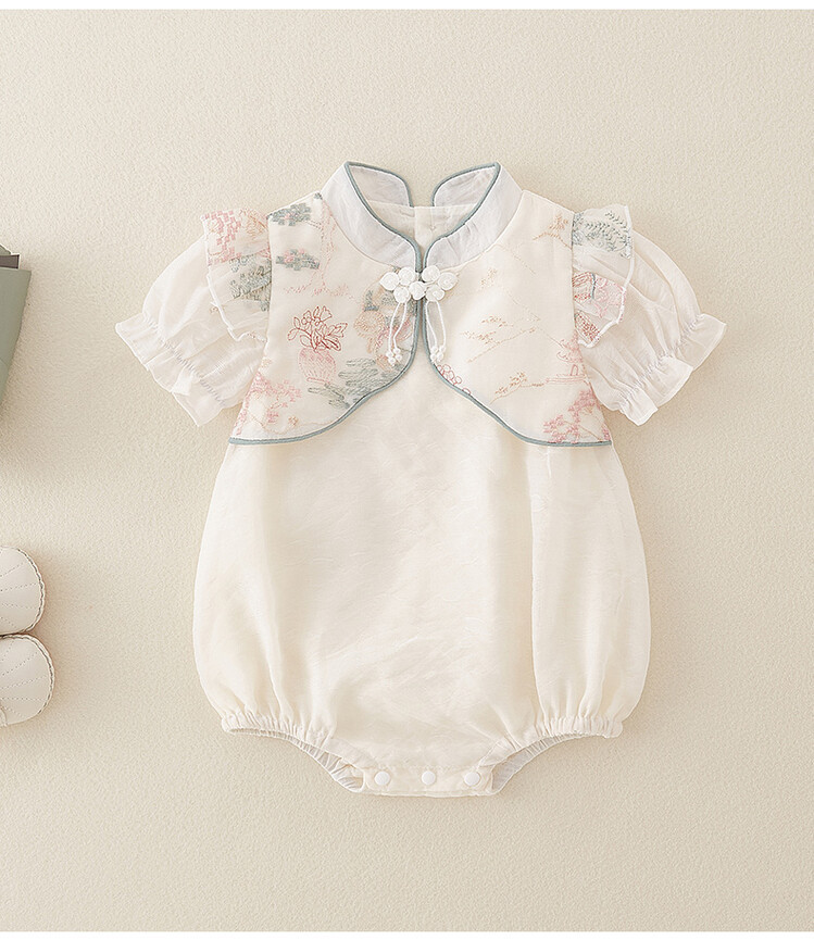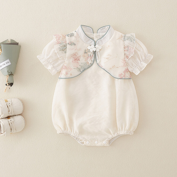 아기 옷 여름 랩 패션 의류 중국 스타일 아기 소녀의 원피스 옷 얇은 반팔 보름달 백일 공주 하 옷