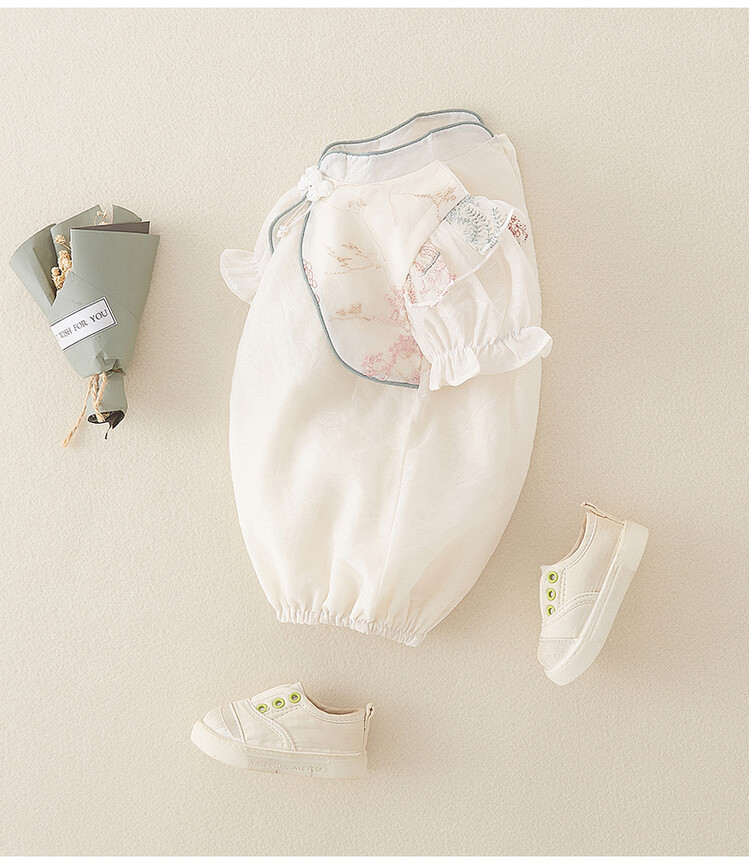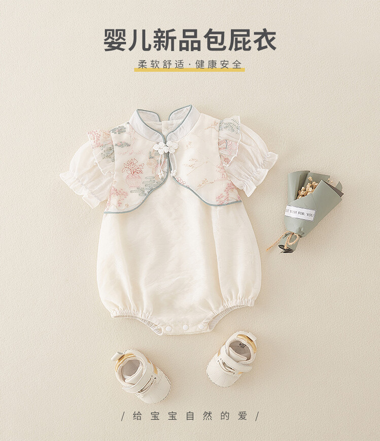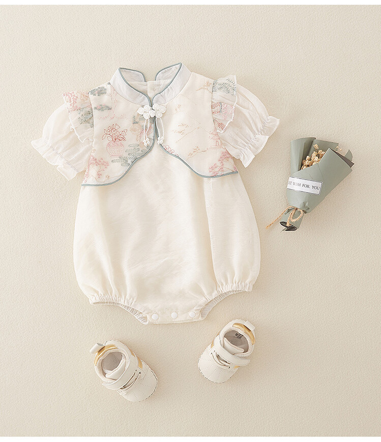 아기 옷 여름 랩 패션 의류 중국 스타일 아기 소녀의 원피스 옷 얇은 반팔 보름달 백일 공주 하 옷스토어 가기