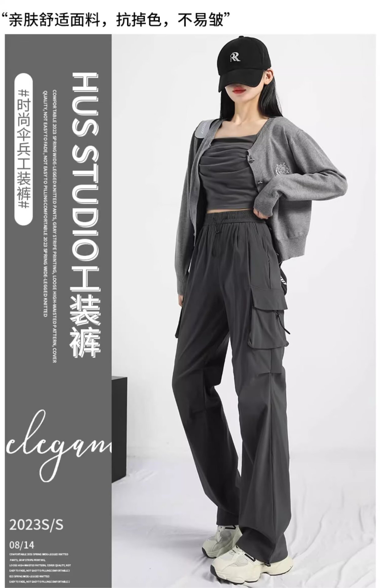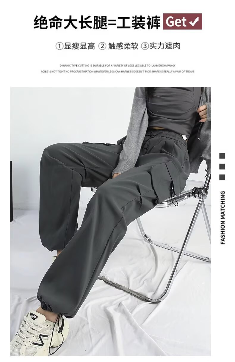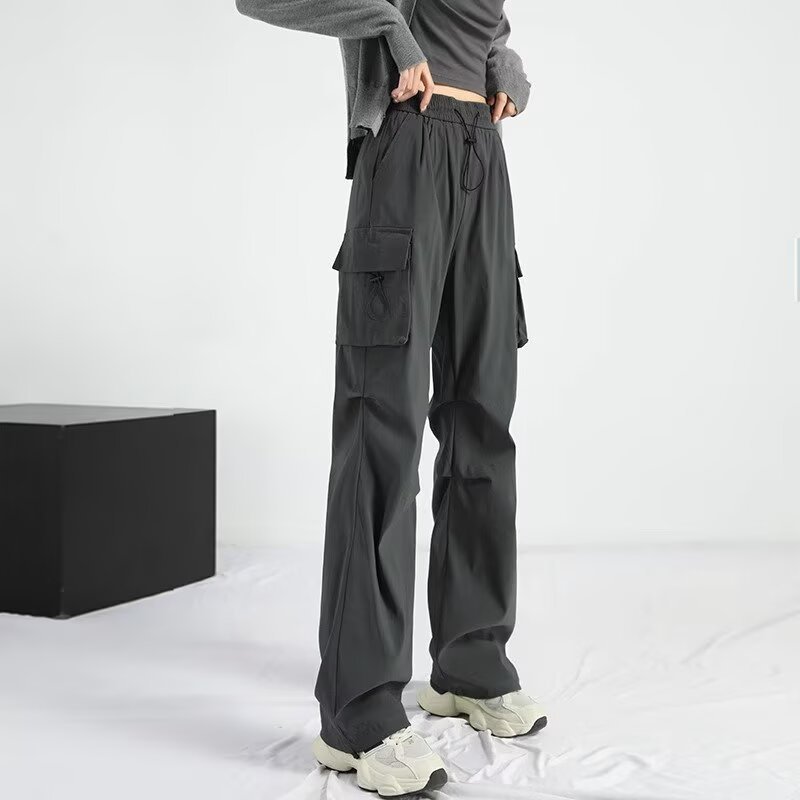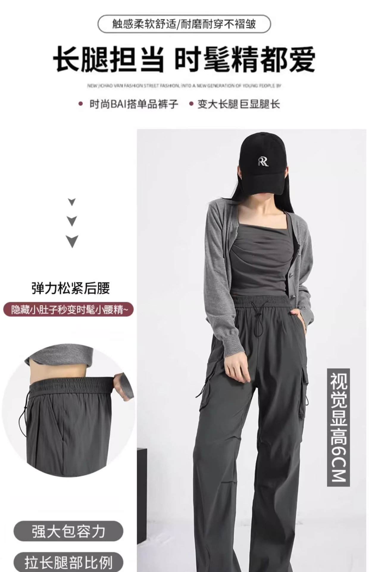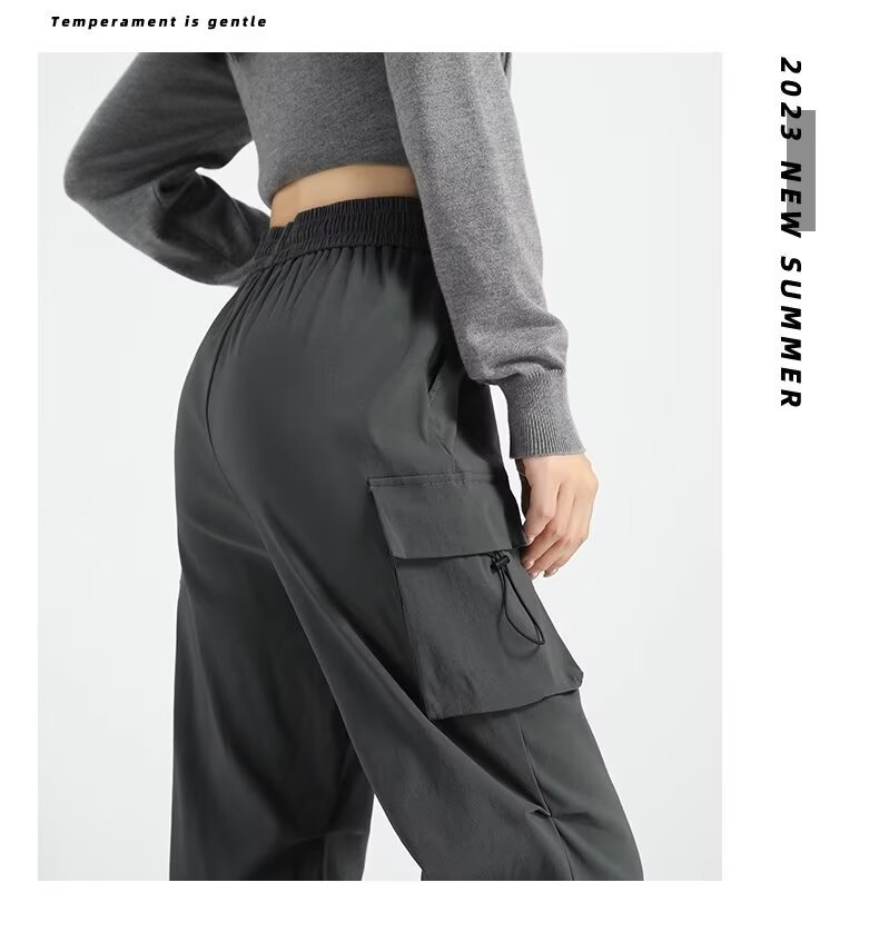 미국 스타일 봄과 가을주의 바지 여성 여름 얇은 회색 높은 허리 캐주얼 소박한 바지 작은 빠른 건조 스포츠 바지스토어 가기