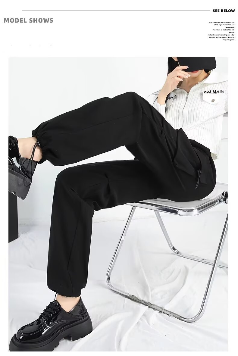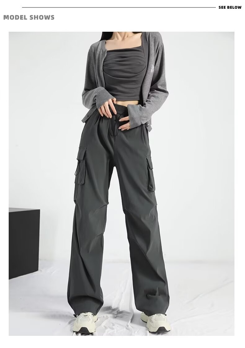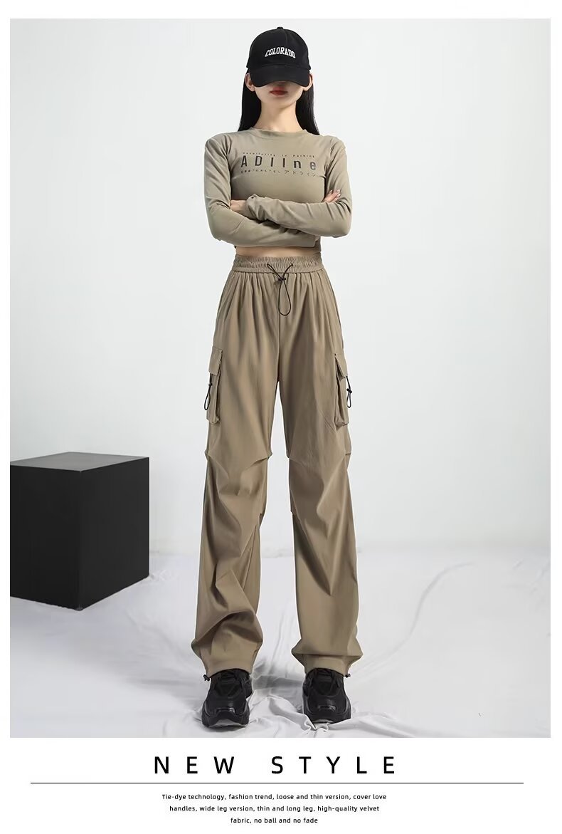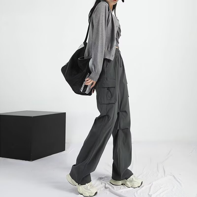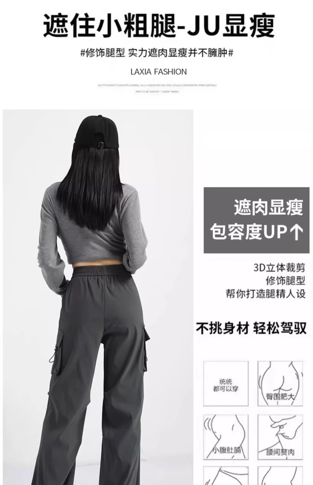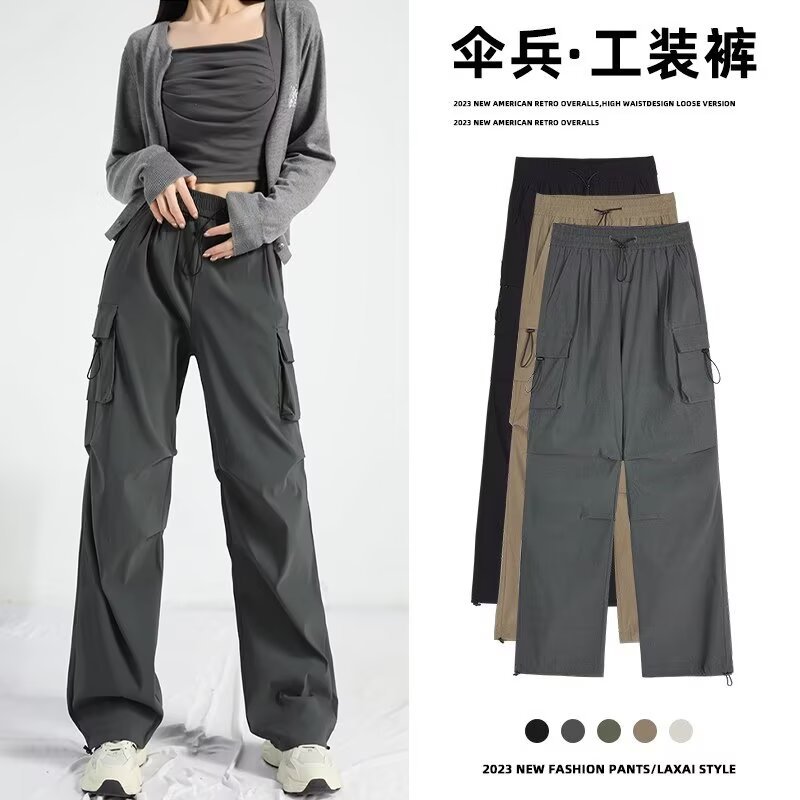 미국 스타일 봄과 가을주의 바지 여성 여름 얇은 회색 높은 허리 캐주얼 소박한 바지 작은 빠른 건조 스포츠 바지스토어 가기