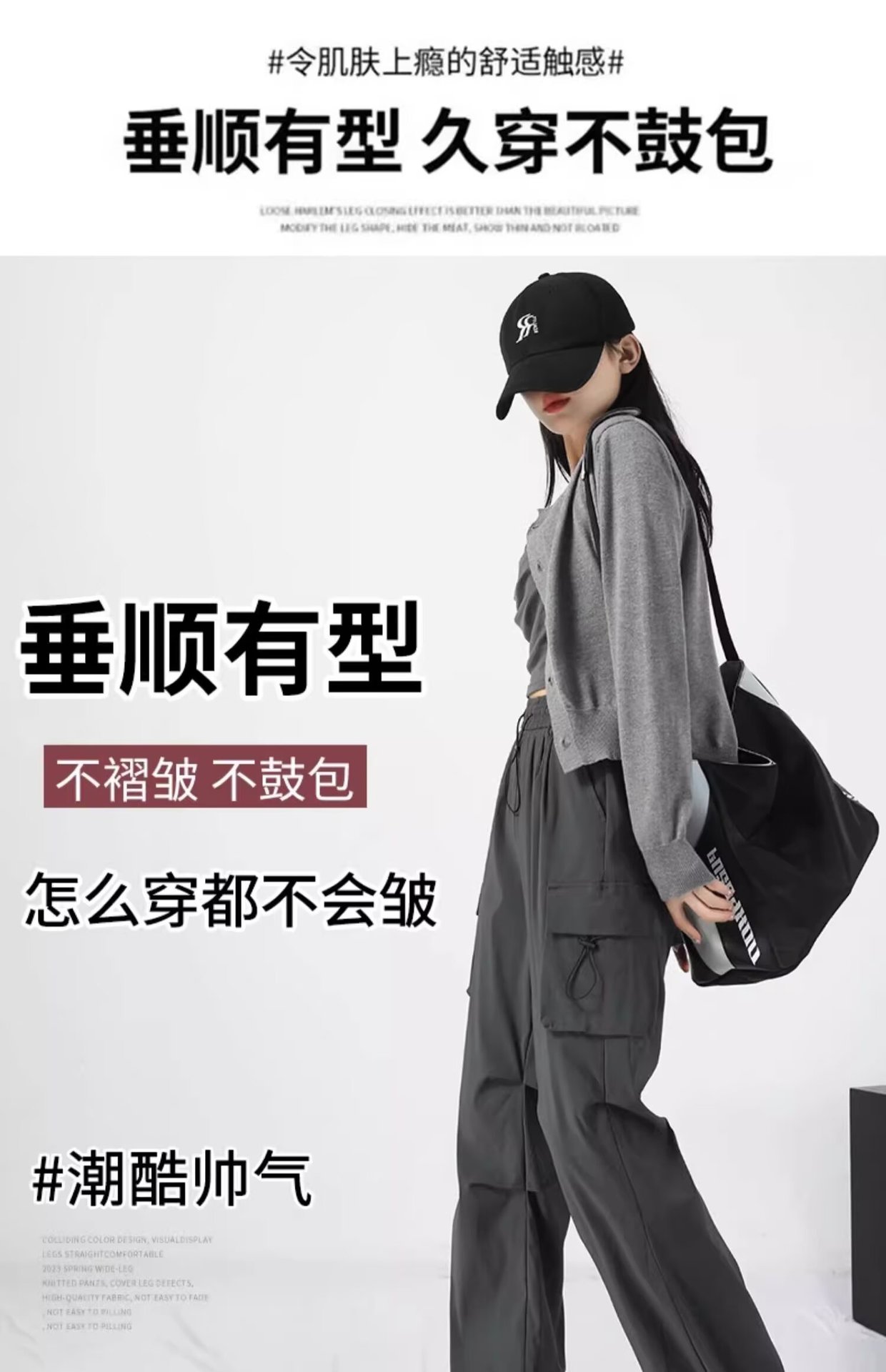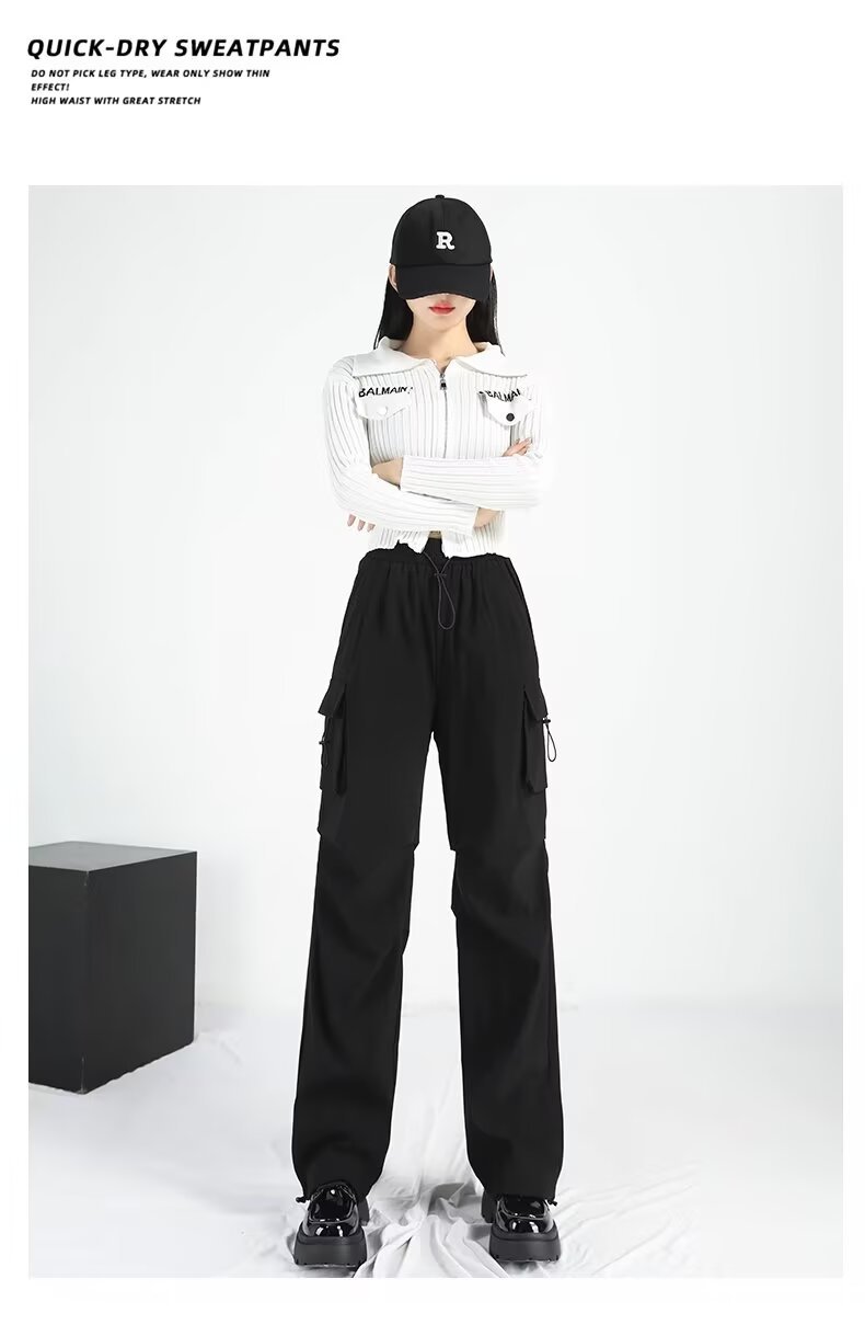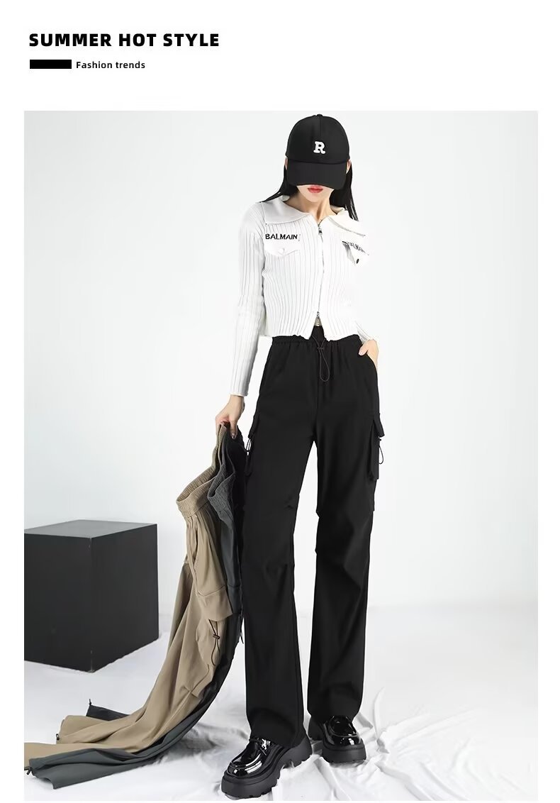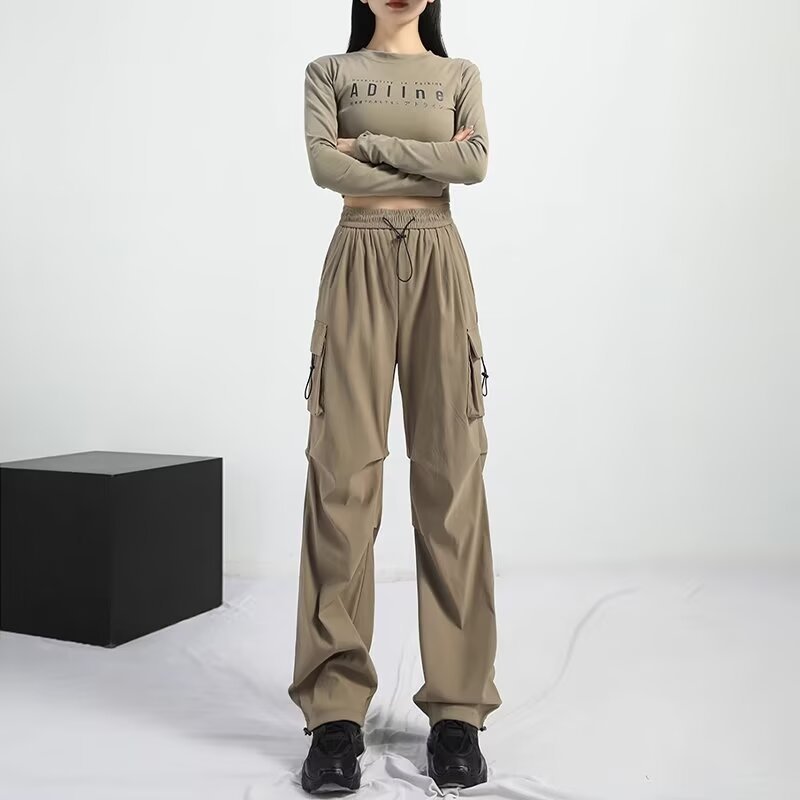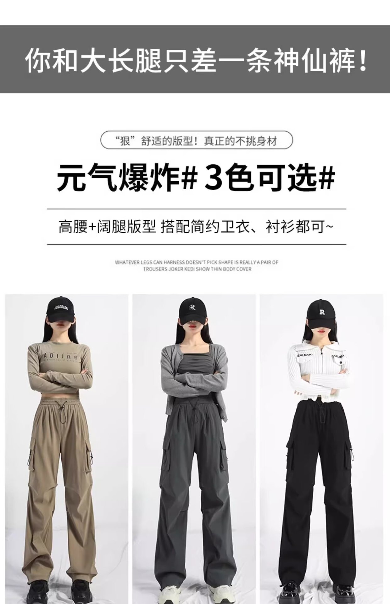 미국 스타일 봄과 가을주의 바지 여성 여름 얇은 회색 높은 허리 캐주얼 소박한 바지 작은 빠른 건조 스포츠 바지스토어 가기