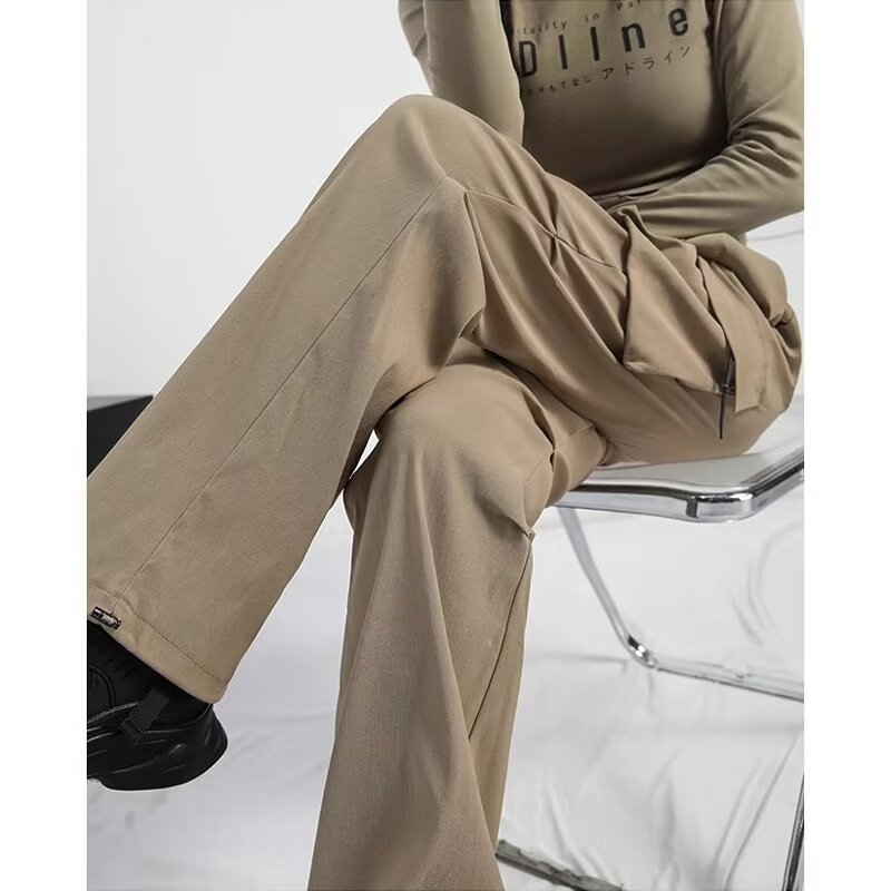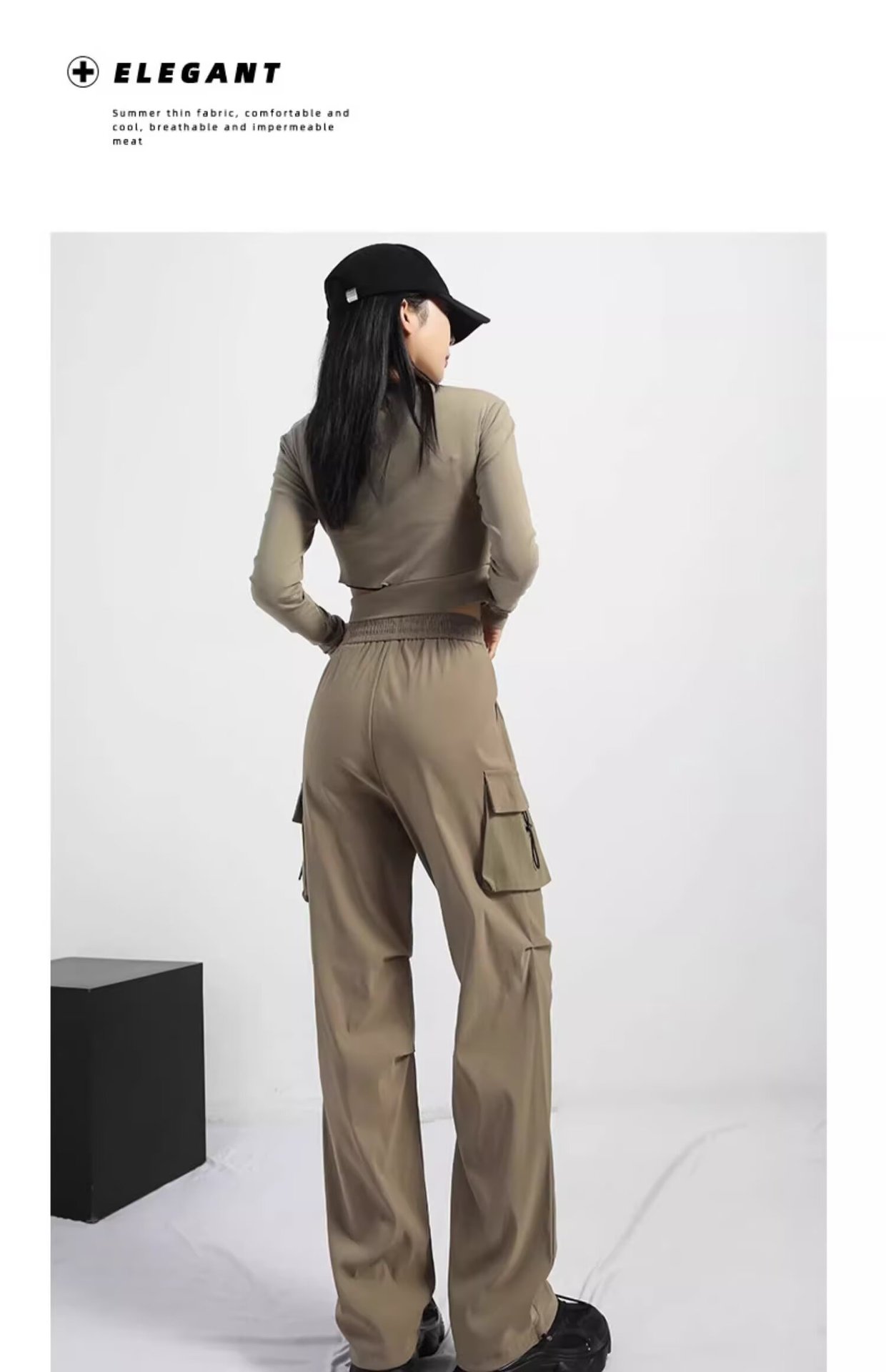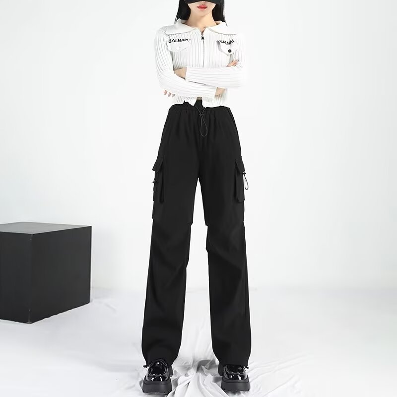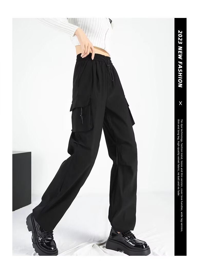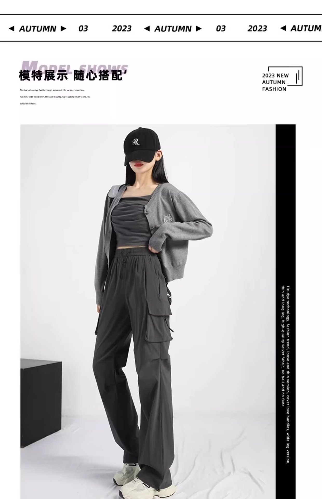 미국 스타일 봄과 가을주의 바지 여성 여름 얇은 회색 높은 허리 캐주얼 소박한 바지 작은 빠른 건조 스포츠 바지스토어 가기