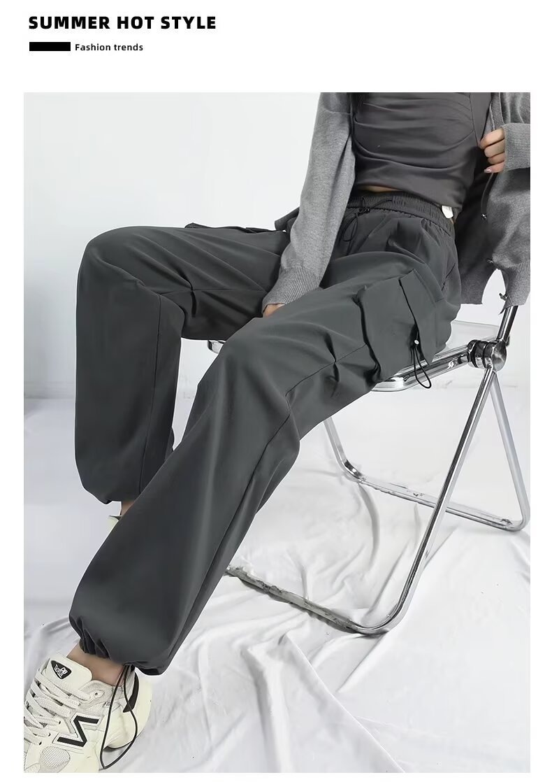 미국 스타일 봄과 가을주의 바지 여성 여름 얇은 회색 높은 허리 캐주얼 소박한 바지 작은 빠른 건조 스포츠 바지