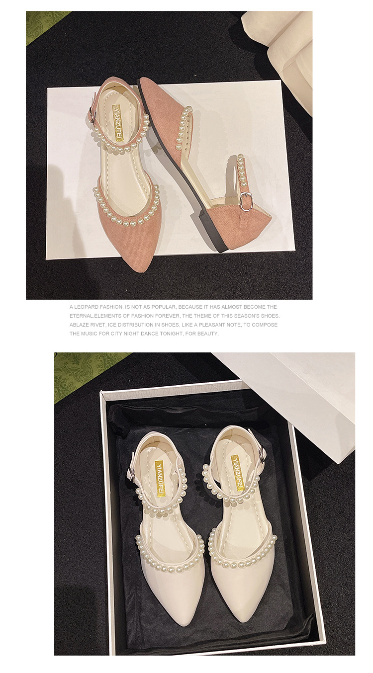 2024 여름 새로운 스타일 포인팅 패션 이브닝 스타일 펄 플랫 페어리 스타일 캐주얼 신발 버클스토어 가기