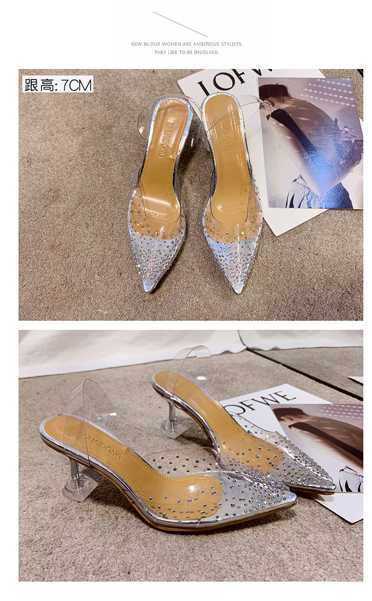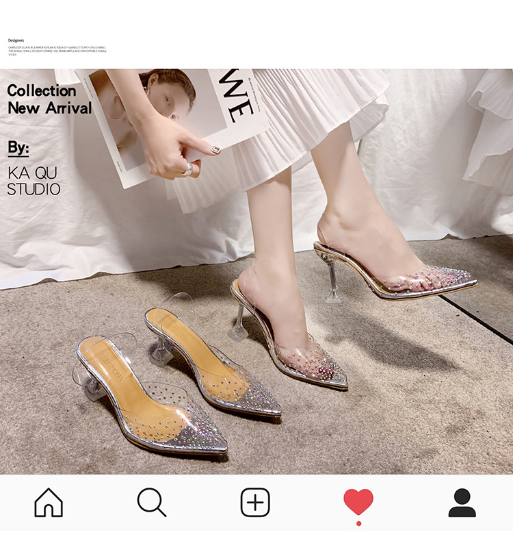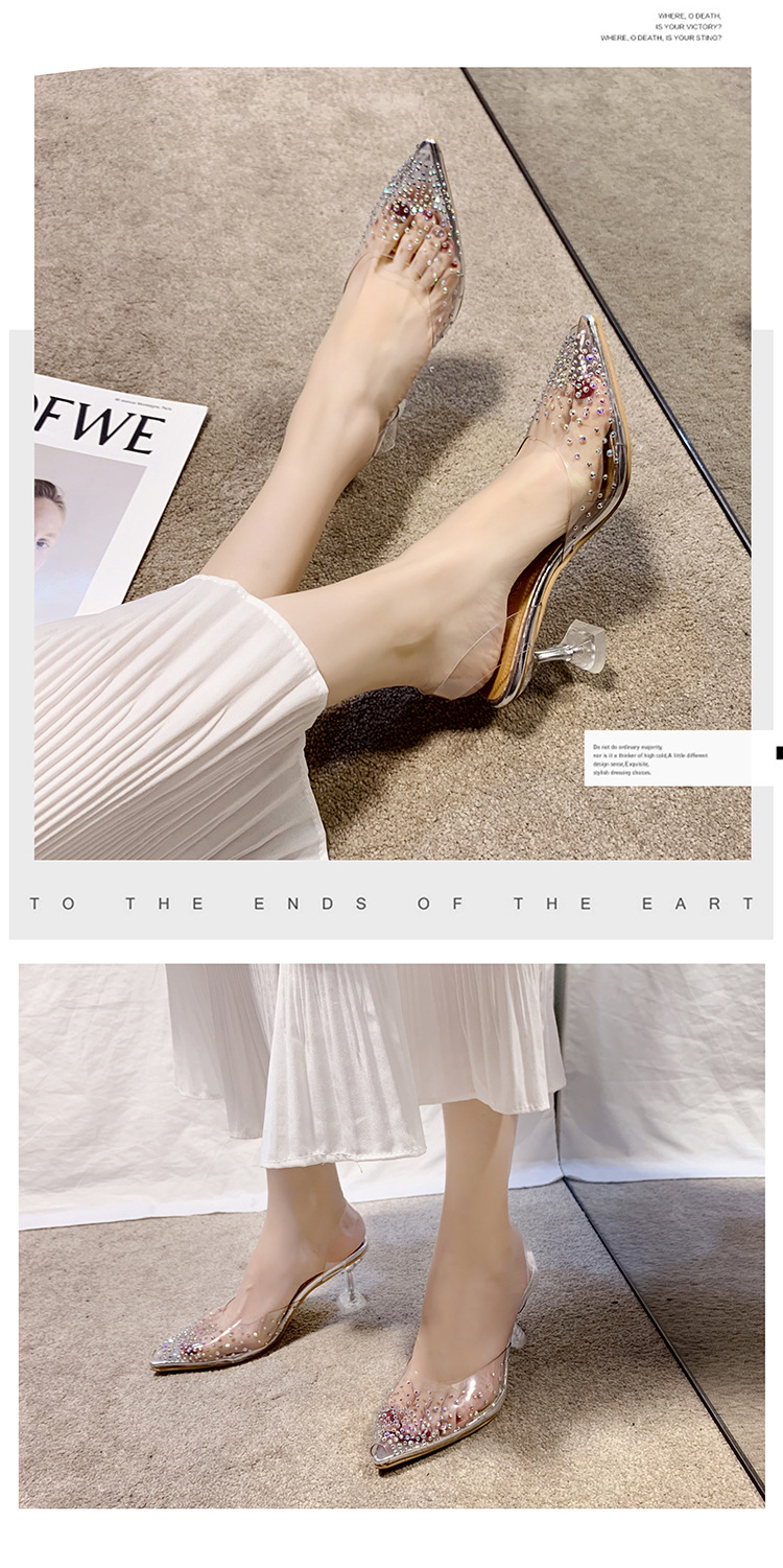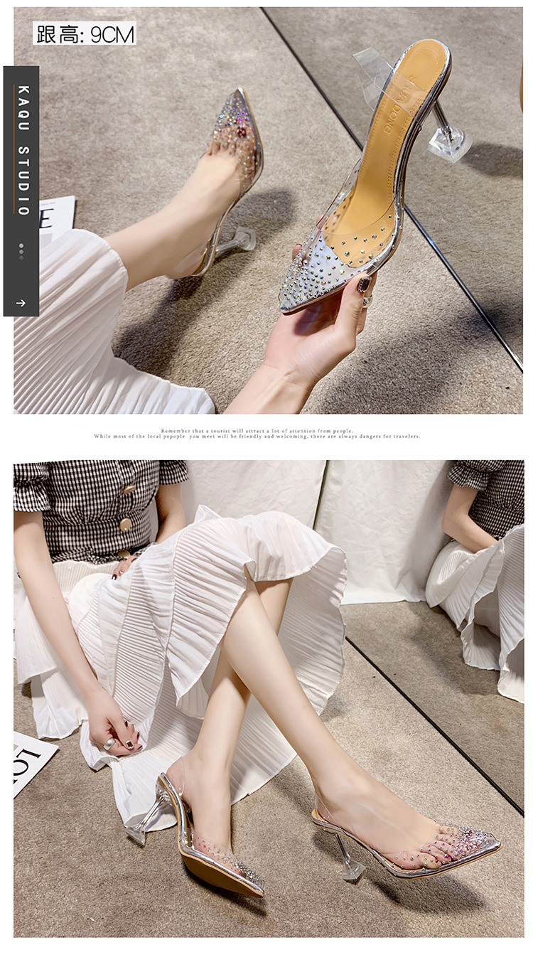 유럽 및 미국 플러스 사이즈 투명한 하이힐 샌들 여성용 여름 하이힐 한 캐릭터 피쉬 입 신발, 라인스톤 하이힐 크리스탈 신발 착용