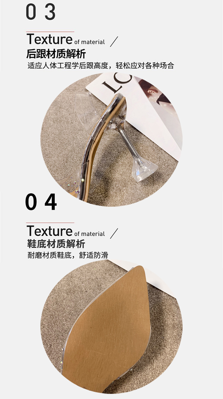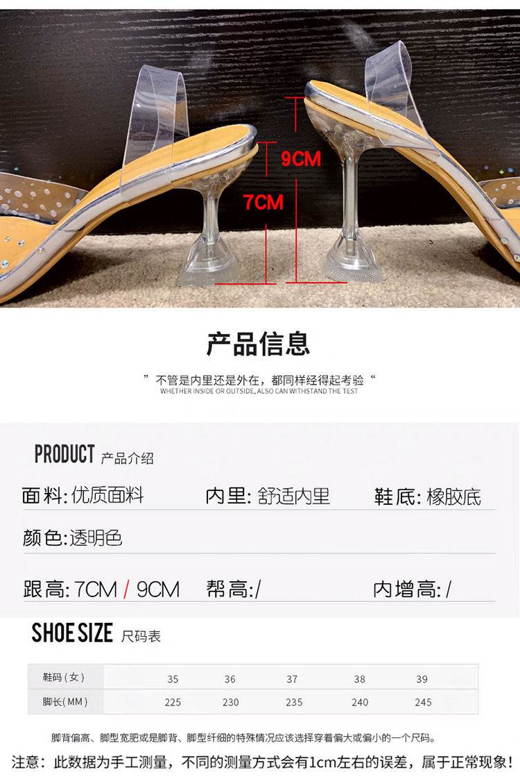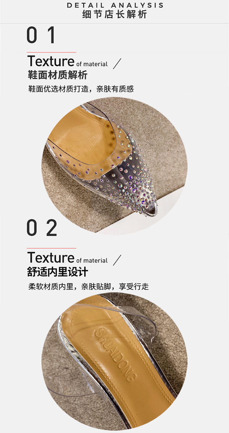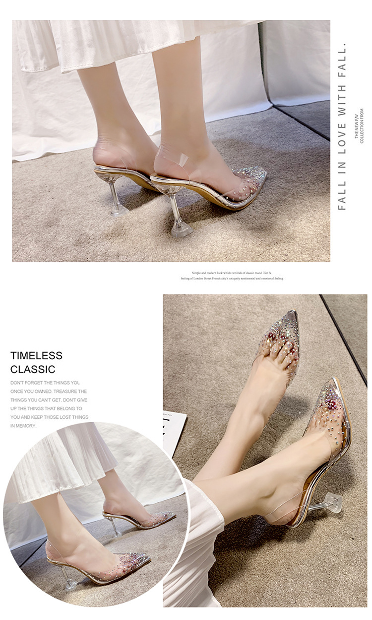 유럽 및 미국 플러스 사이즈 투명한 하이힐 샌들 여성용 여름 하이힐 한 캐릭터 피쉬 입 신발, 라인스톤 하이힐 크리스탈 신발 착용