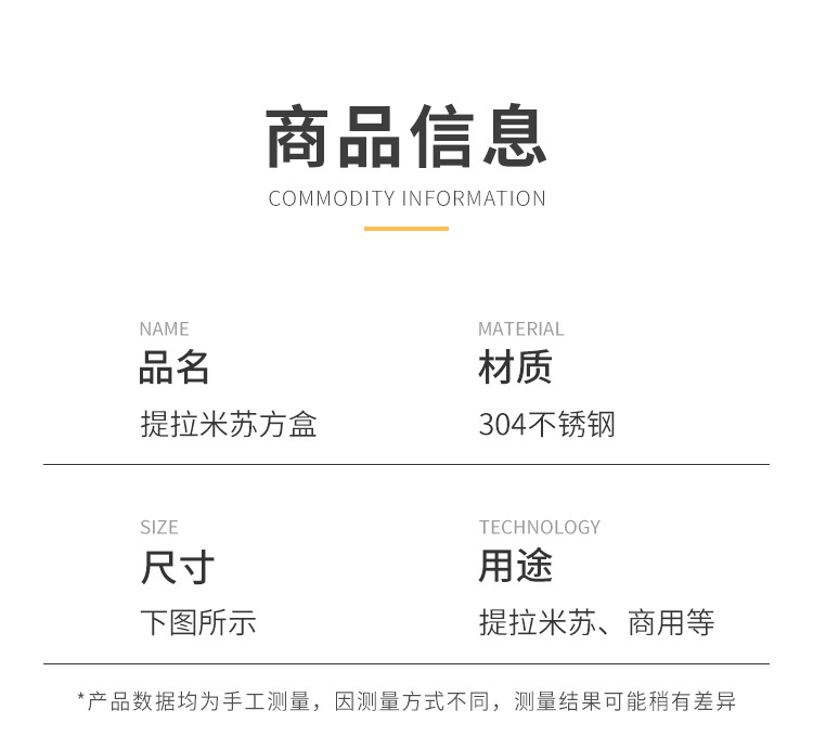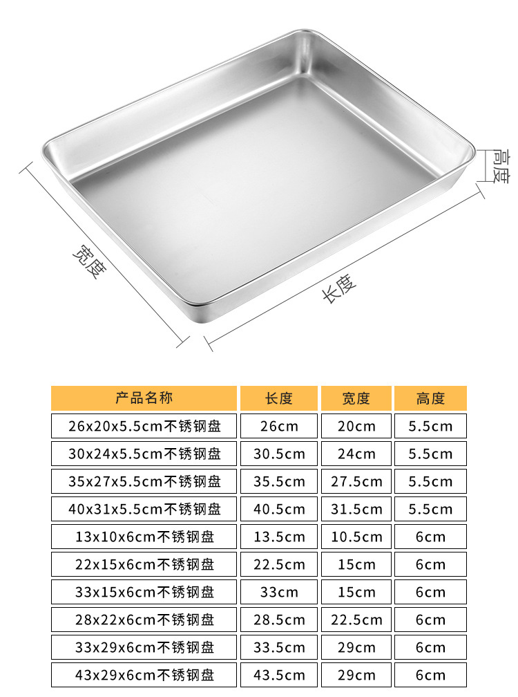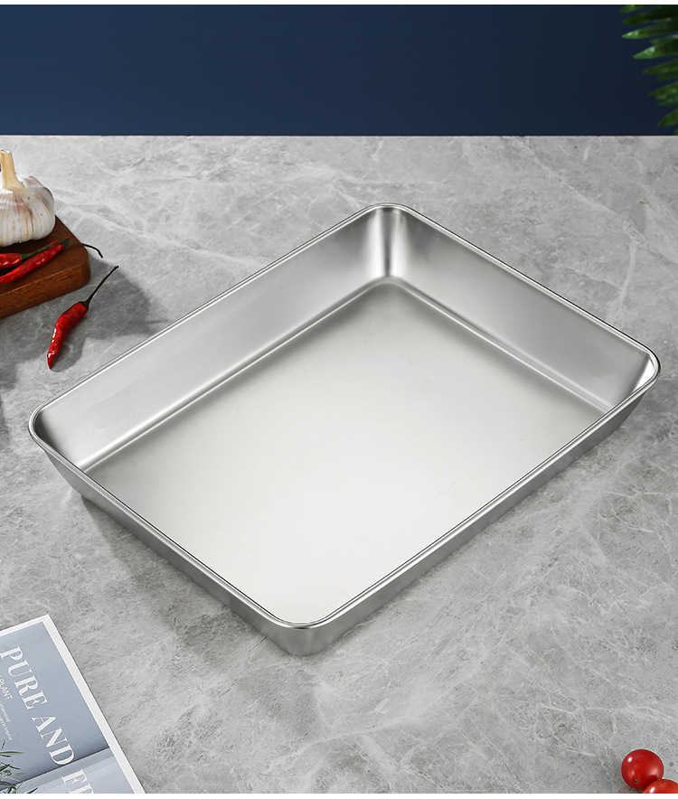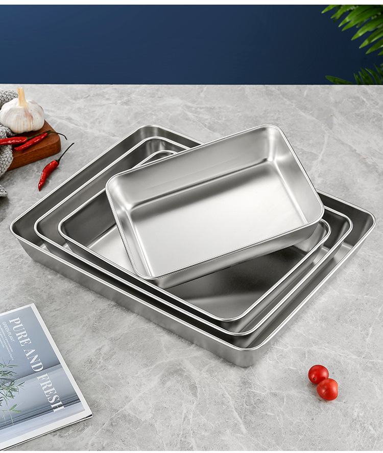 스테인레스 스틸 티라미수 플레이트 플랫 하단 스퀘어 플레이트 뚜껑 케이크 베이킹 플레이트 접시와 직사각형 두꺼운 상자스토어 가기