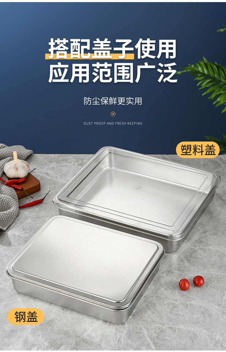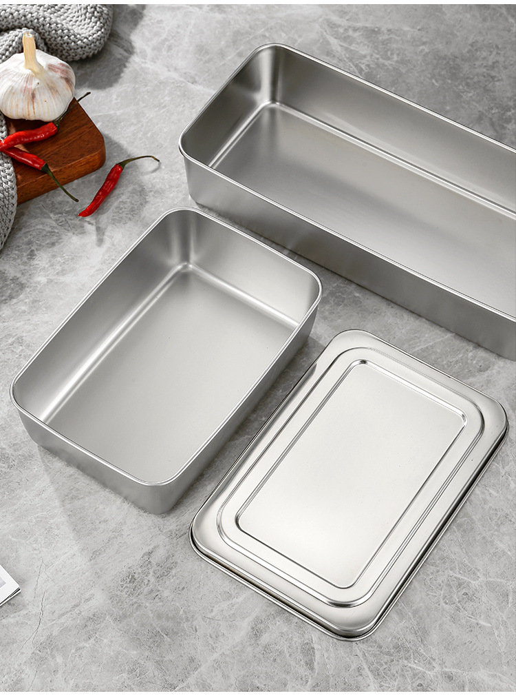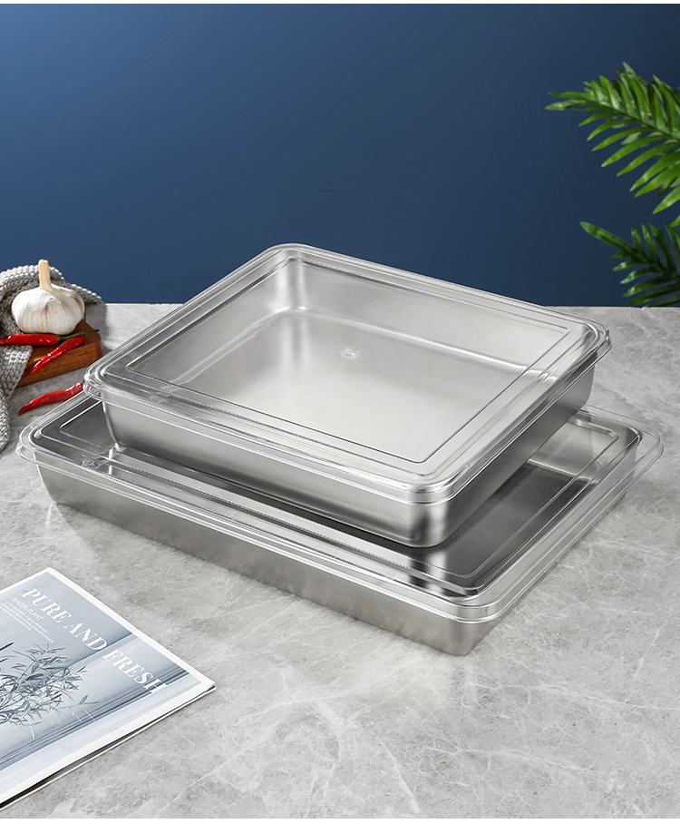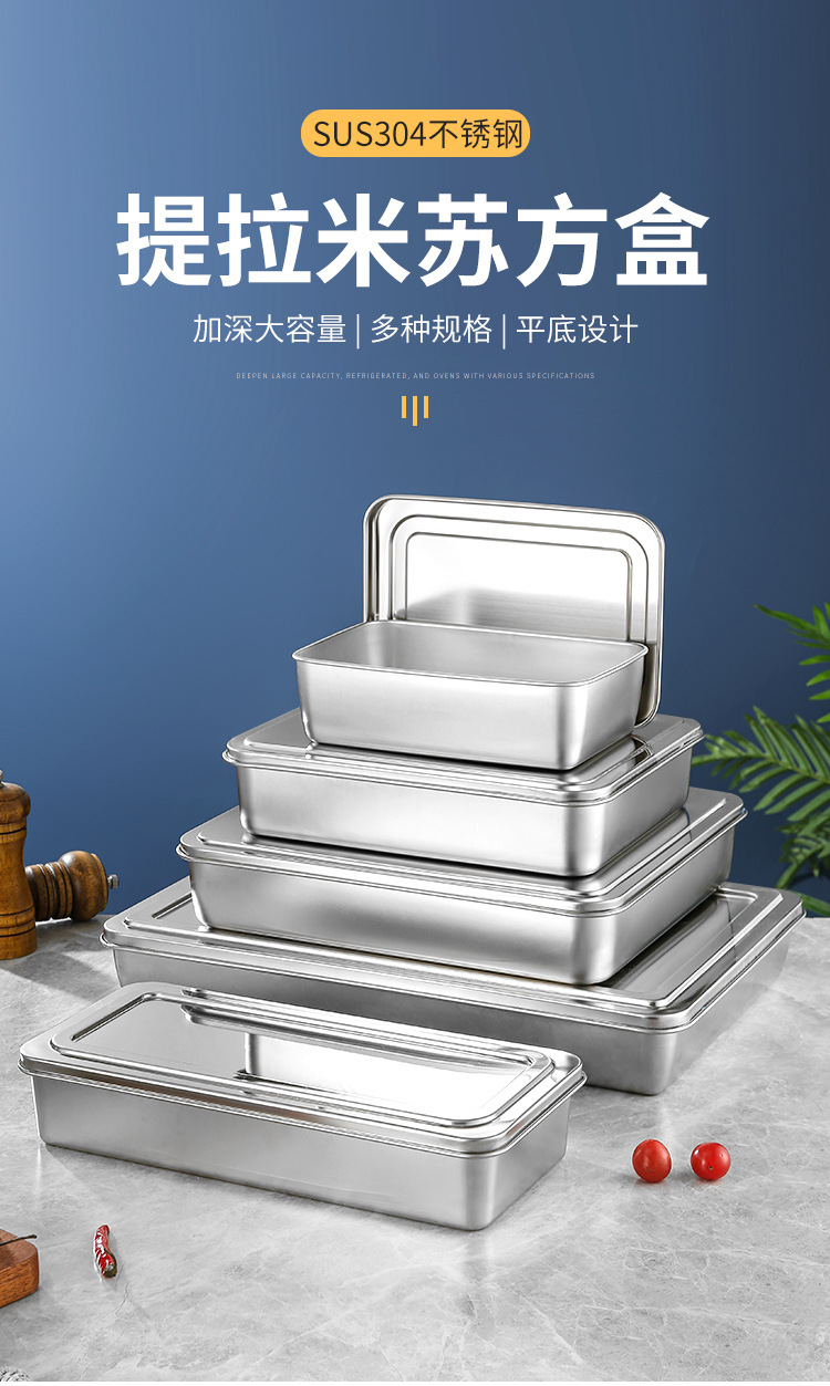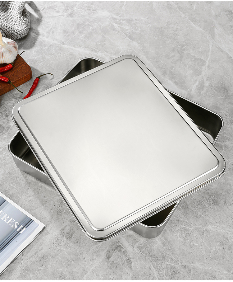 스테인레스 스틸 티라미수 플레이트 플랫 하단 스퀘어 플레이트 뚜껑 케이크 베이킹 플레이트 접시와 직사각형 두꺼운 상자