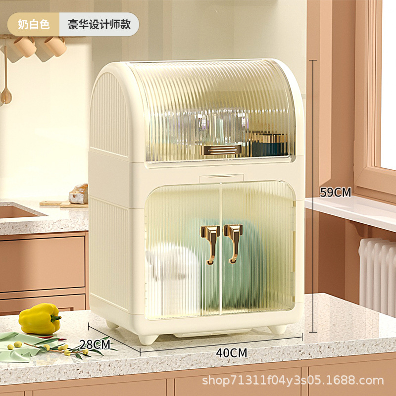 • 우유 화이트 라이트 럭셔리 컵 홀더 1 층 찬장 2 층 팩