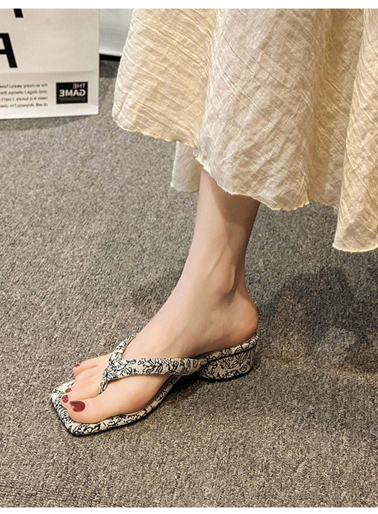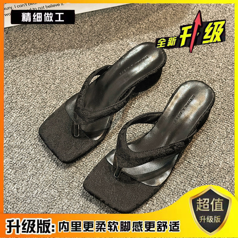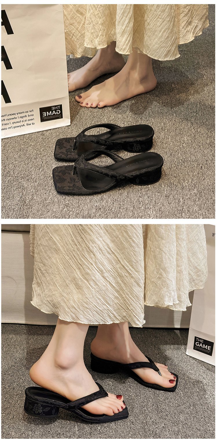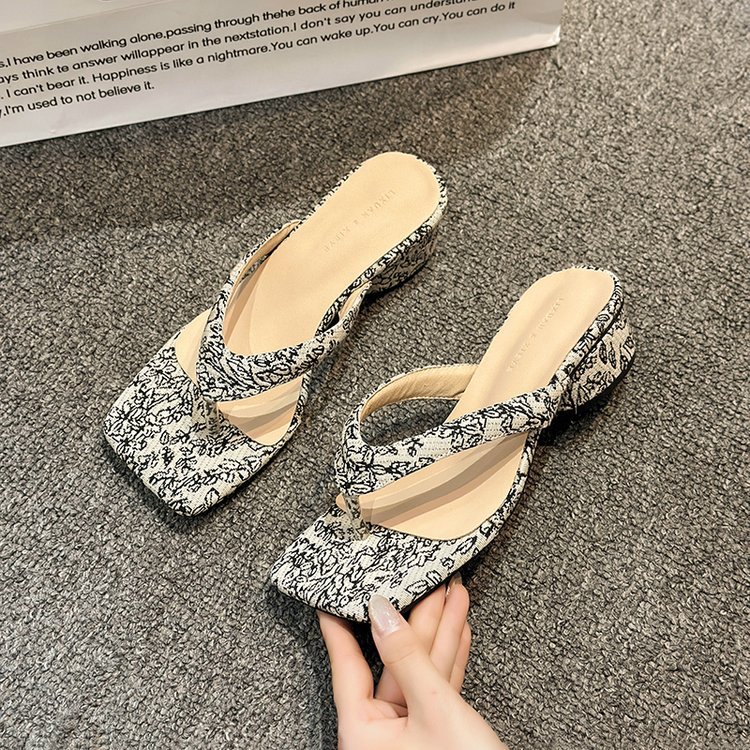 2024 년 봄과 여름 새로운 대외 무역 플립 플롭 여성용 청키 힐 샌들 외부 착용 프렌치 비치 페어리 스타일 샌들스토어 가기