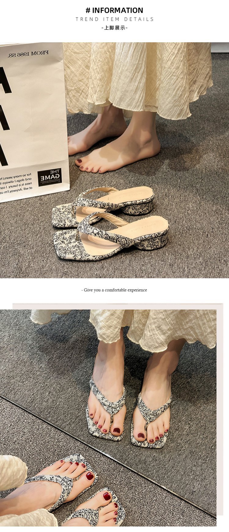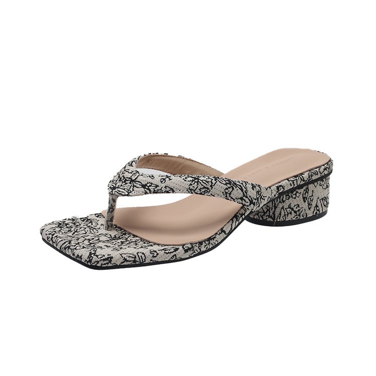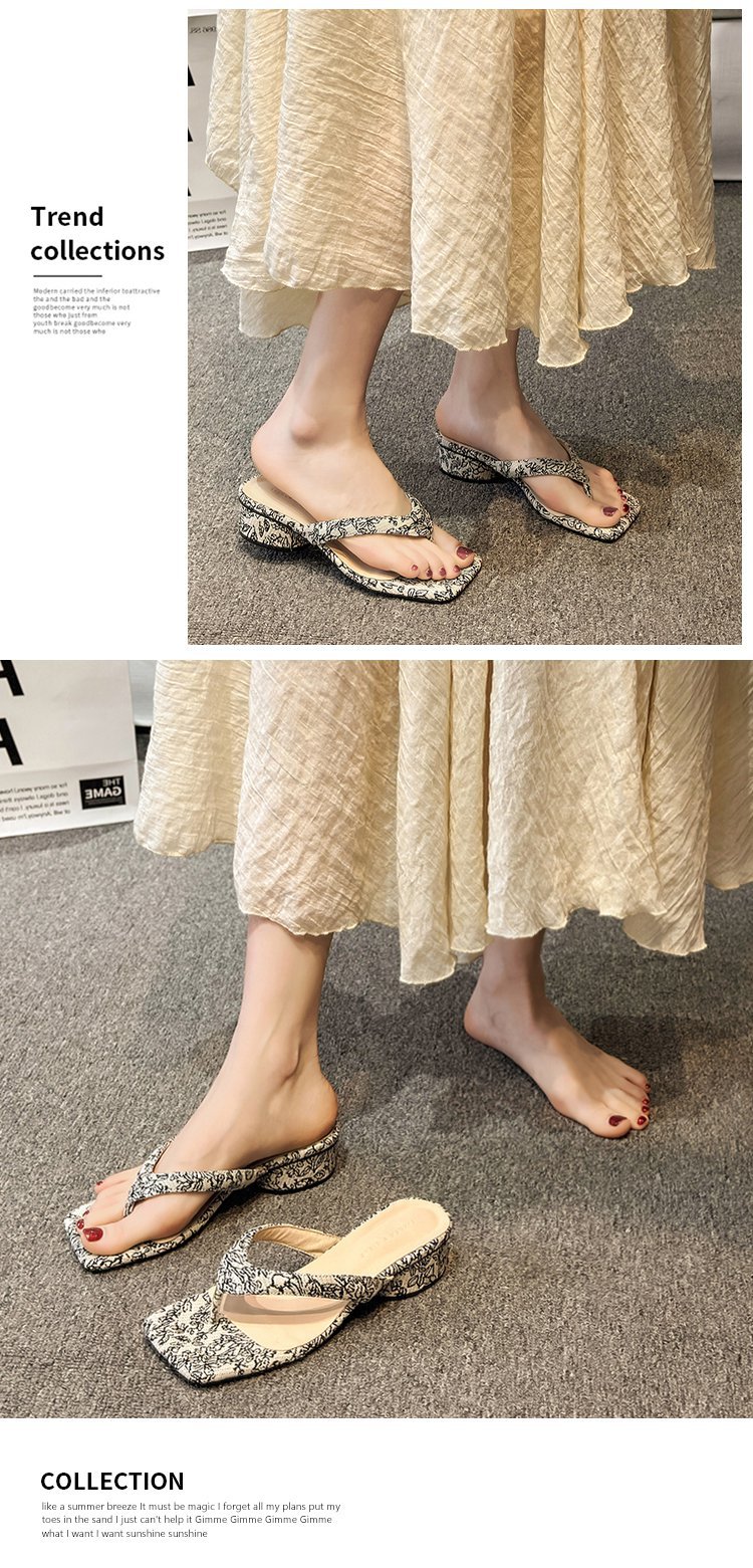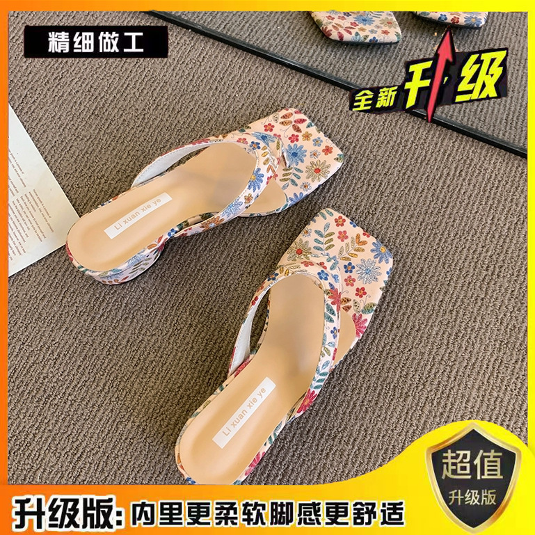 2024 년 봄과 여름 새로운 대외 무역 플립 플롭 여성용 청키 힐 샌들 외부 착용 프렌치 비치 페어리 스타일 샌들스토어 가기