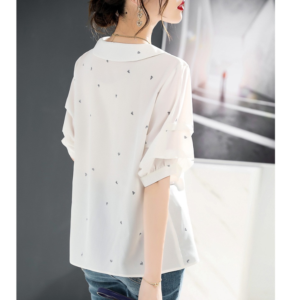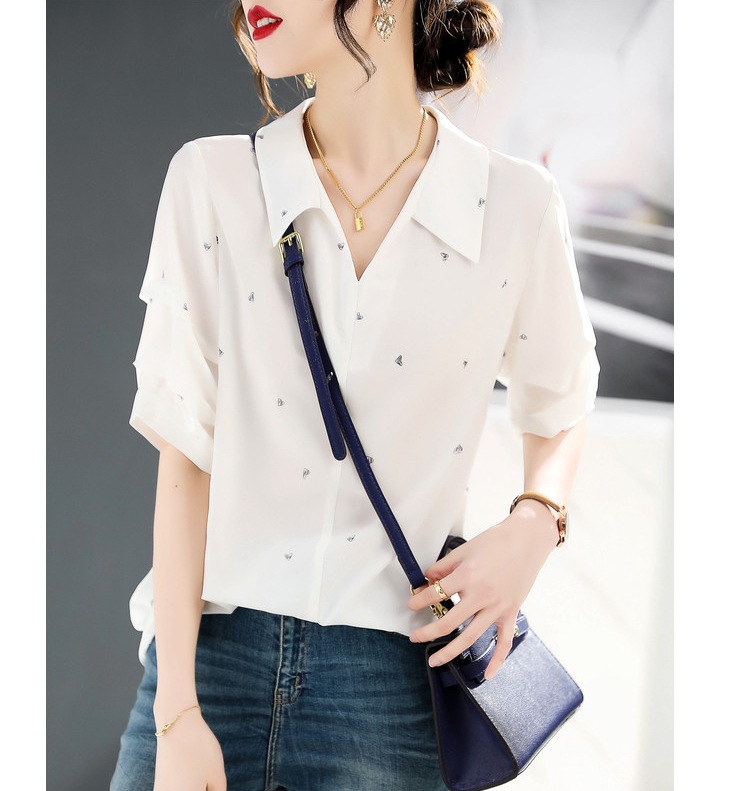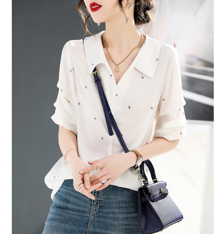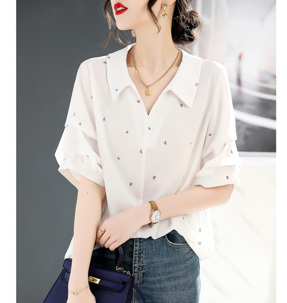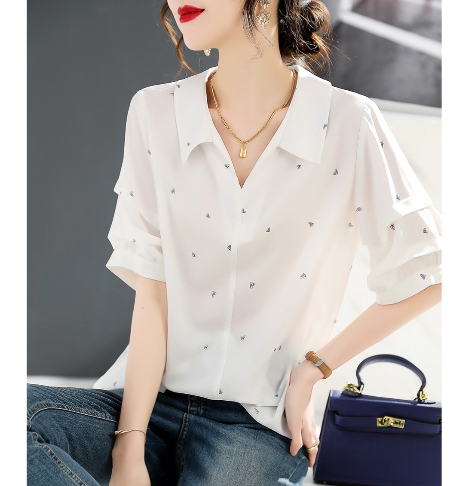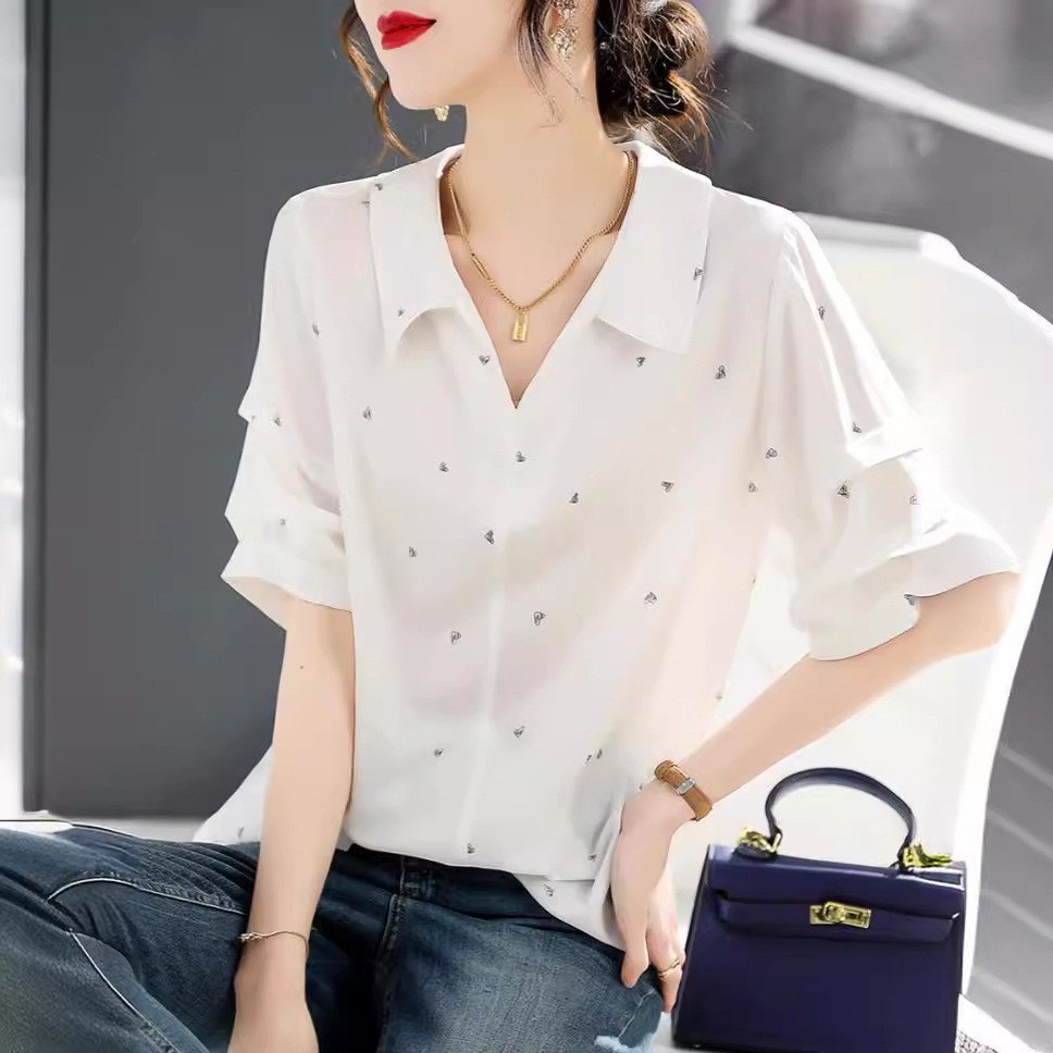 2024 여름 새로운 스타일 디자인 센스 패션 캐주얼 우아한 슬리밍 연령 감소 Lel 인쇄 여성용 셔츠 티셔츠 트렌디스토어 가기