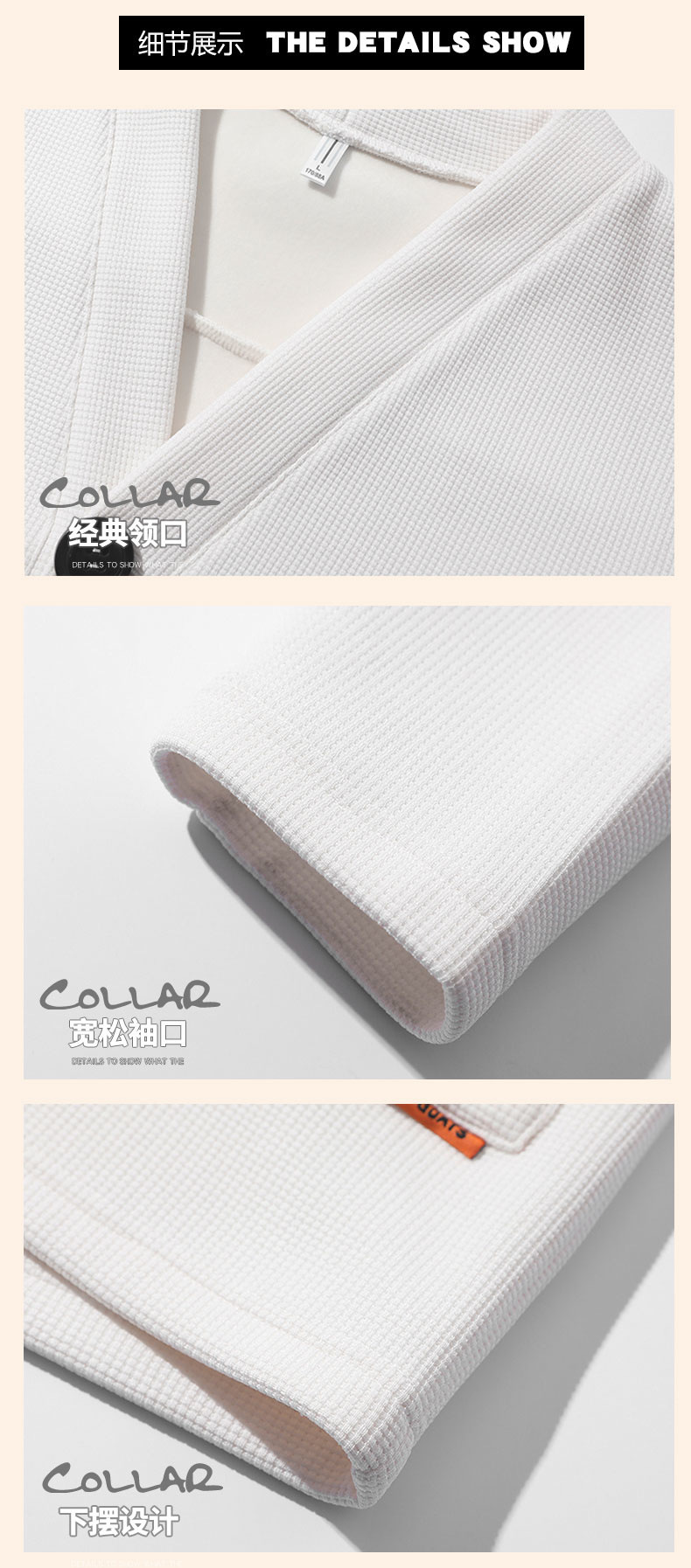 2024 봄과 가을 단색 와플 한국 스타일 Ins 스웨터 세트 싱글 브레스트 카디건 스포츠 세트 남성복스토어 가기