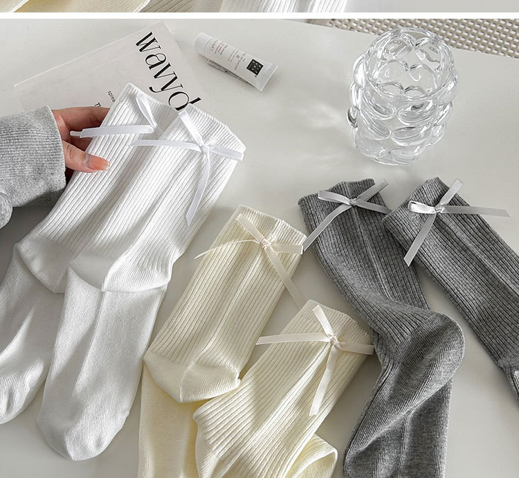 봄과 여름 흰색 JK 양말 여성 튜브 양말 일본 달콤한 일본 활 더미 양말 블랙 그레이 올 매치스토어 가기