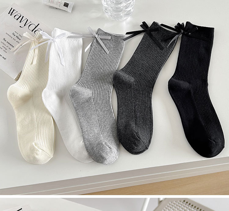봄과 여름 흰색 JK 양말 여성 튜브 양말 일본 달콤한 일본 활 더미 양말 블랙 그레이 올 매치