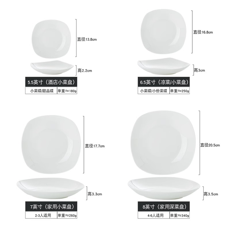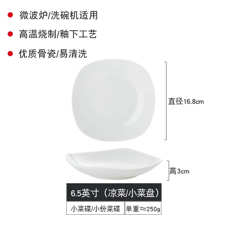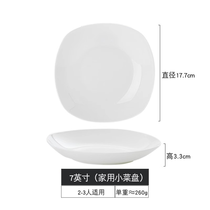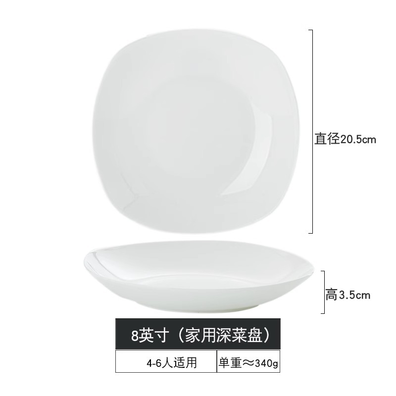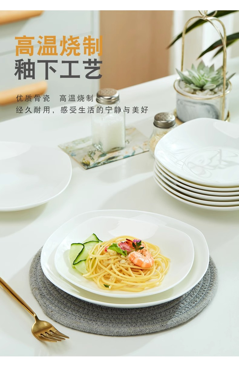 Jingdezhen 순수한 흰색 뼈 중국 플레이트 세트 가정용 세라믹 플레이트 간단한 불규칙한 사각형 플레이트 언더 유약 컬러 수프 플레이트스토어 가기