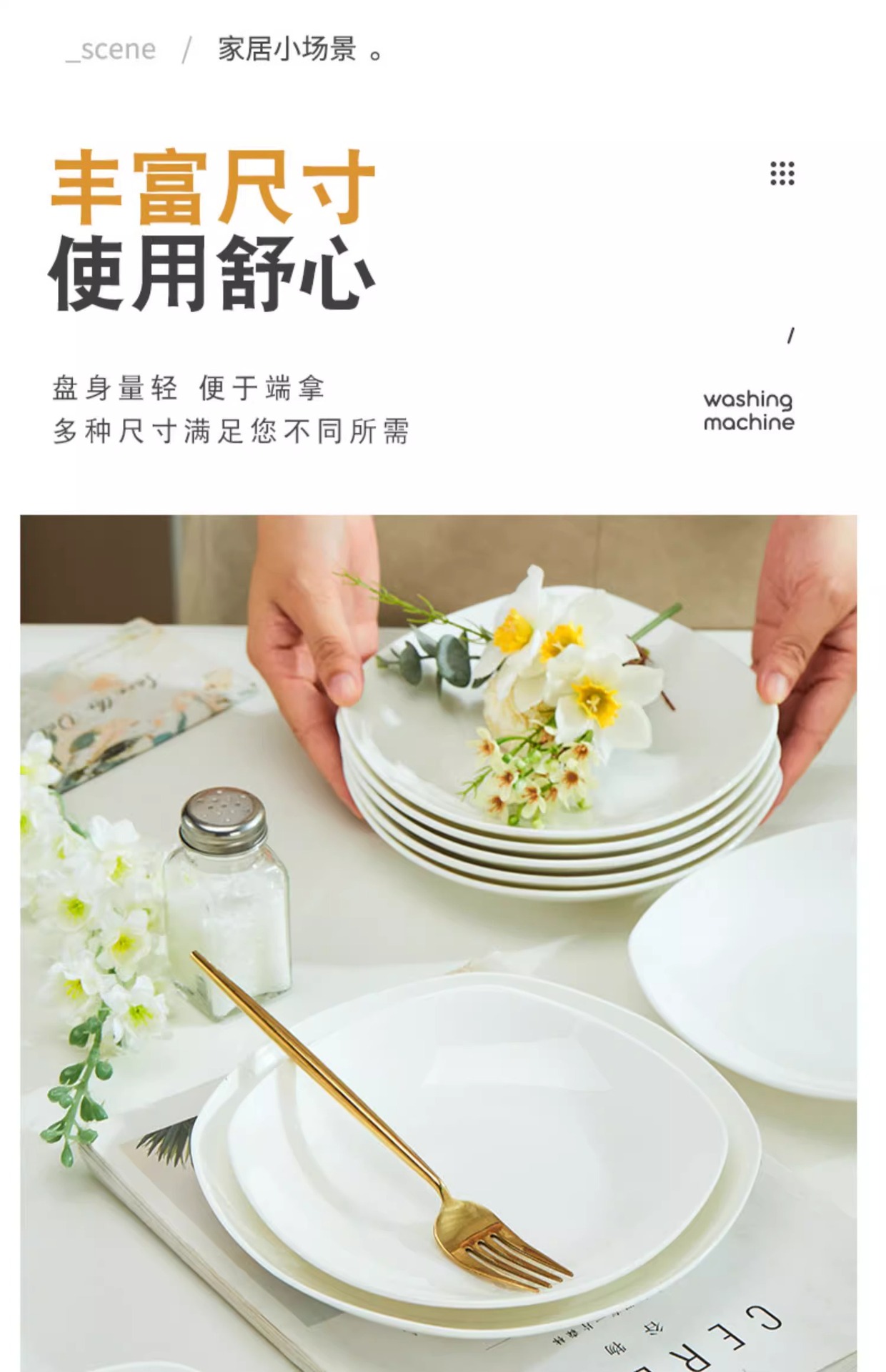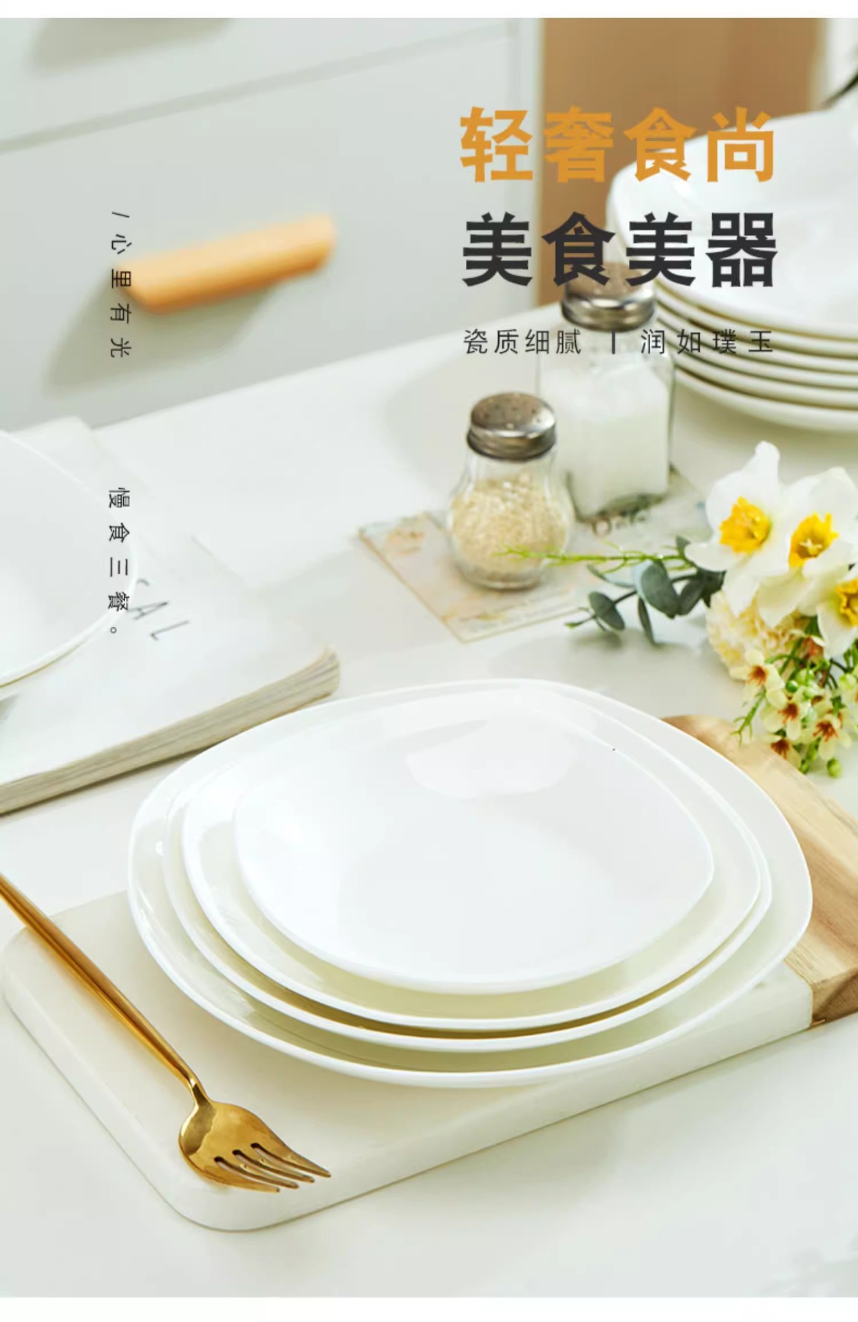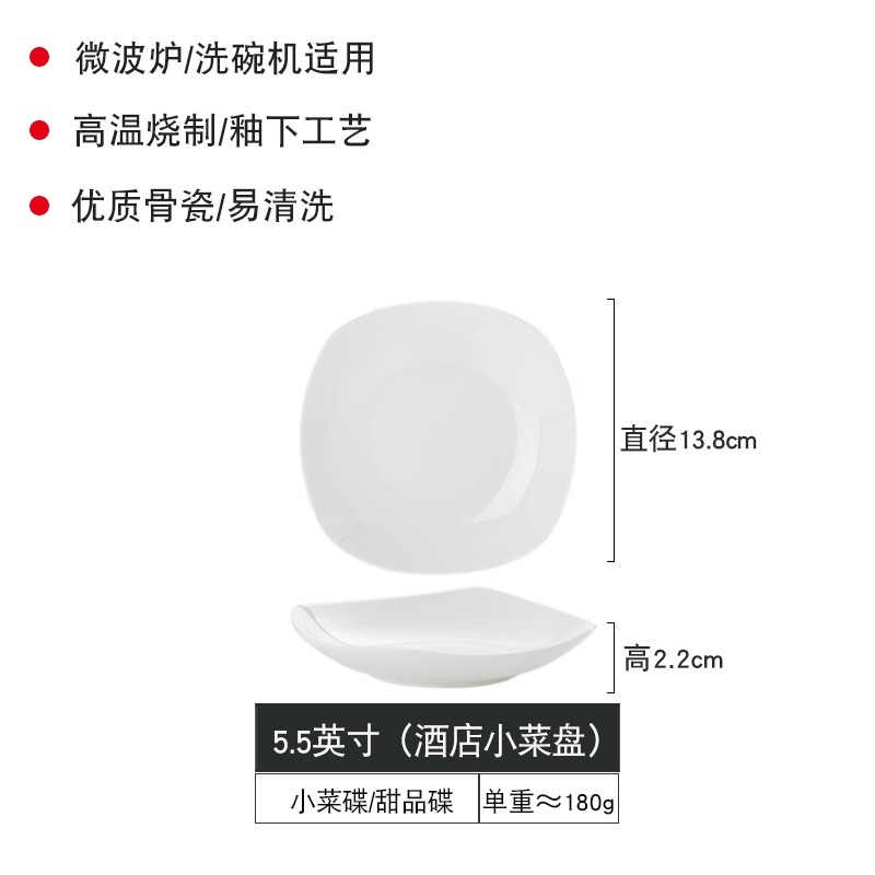 Jingdezhen 순수한 흰색 뼈 중국 플레이트 세트 가정용 세라믹 플레이트 간단한 불규칙한 사각형 플레이트 언더 유약 컬러 수프 플레이트스토어 가기