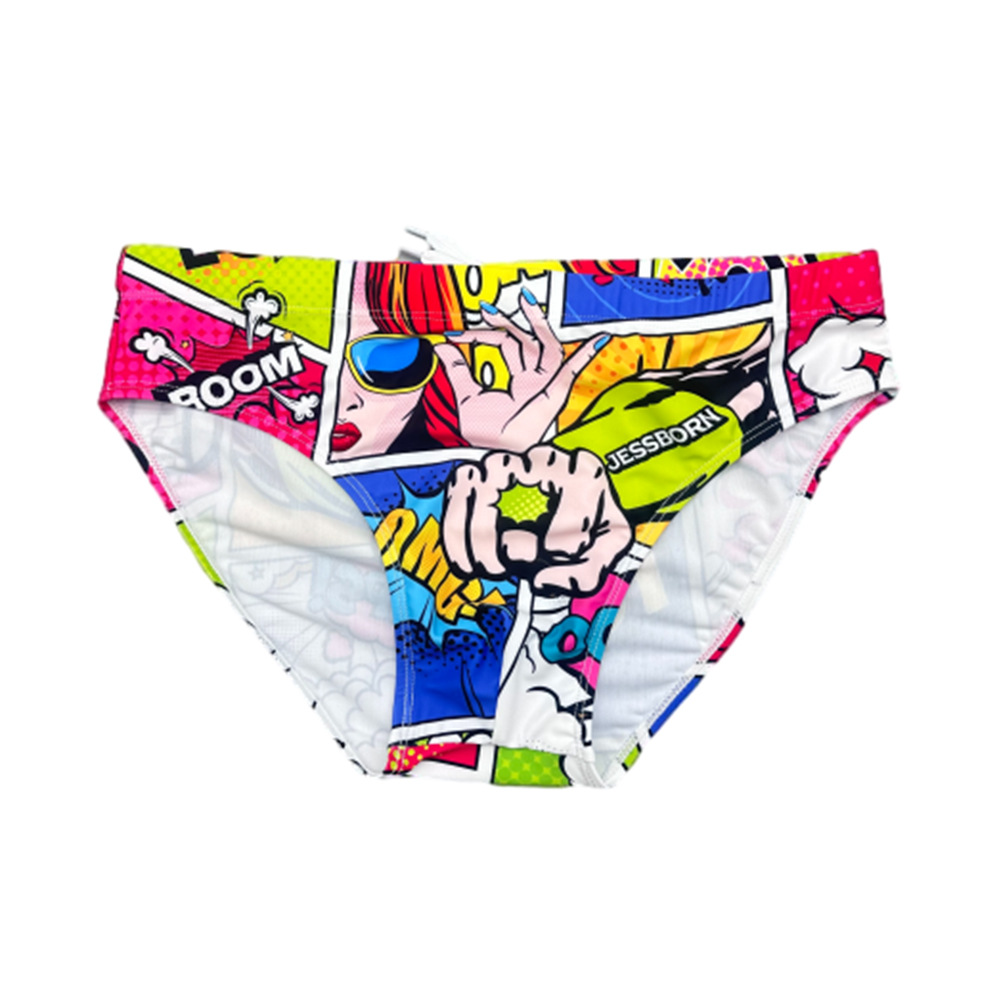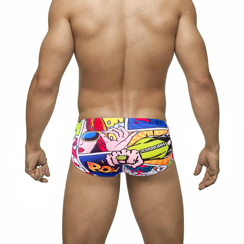JESSBORN 남성 만화 만화 삼각형 수영 트렁크 팝 스타일 패션 섹시한 수영 트렁크 온천 해변 수영복
