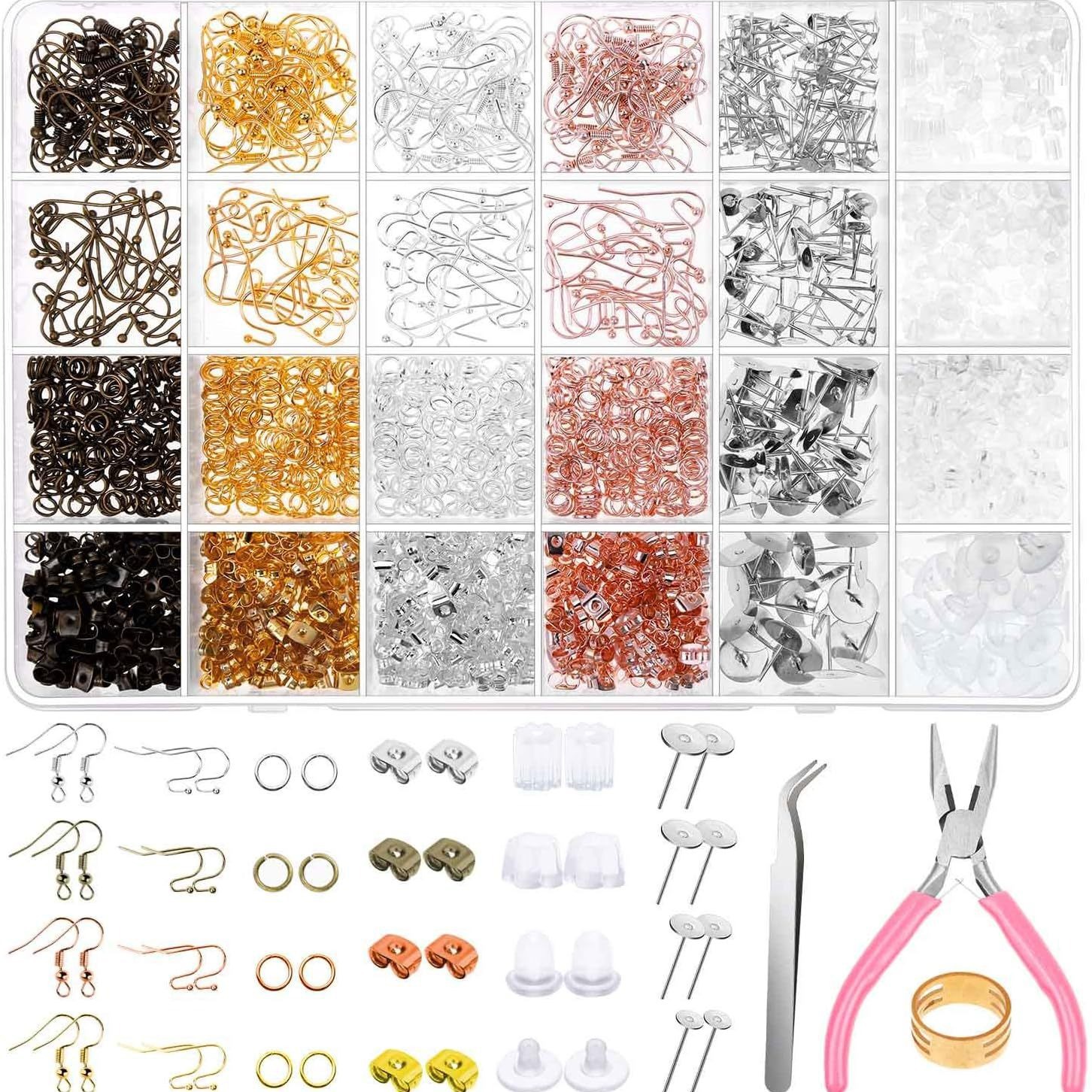 2340pc 귀 후크 볼 후크 이어 핀 나비 이어플러그 4 플라스틱 귀 플러그 DIY 귀걸이 펜던트 만들기 재료