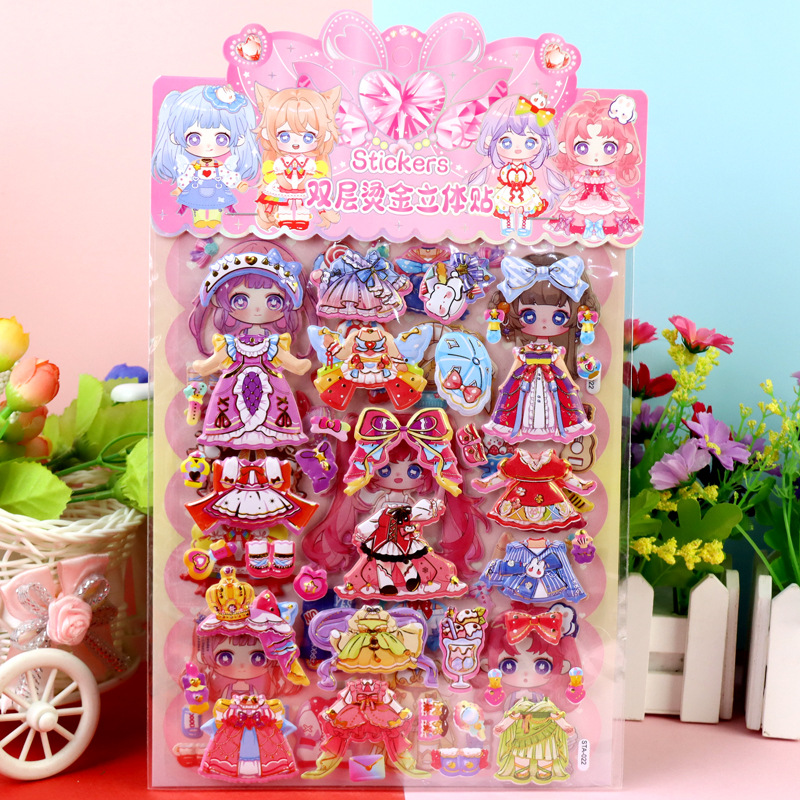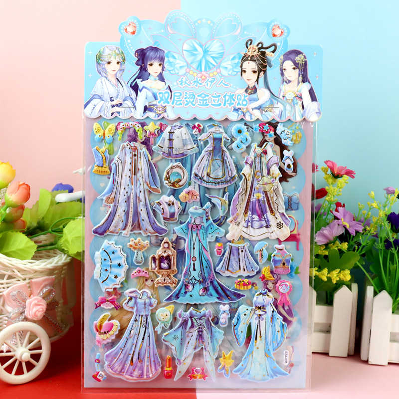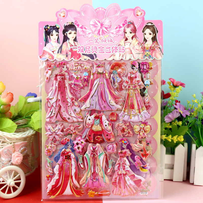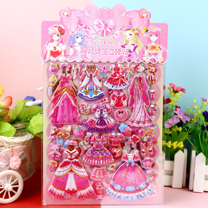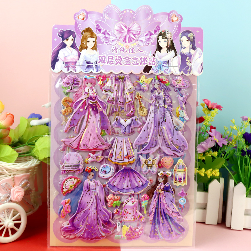 사랑스러운 귀여운 아기 절묘한 소녀 청동 거품 스티커 옷 골동품 스티커 큰 치마 변경 원피스 공주 스티커