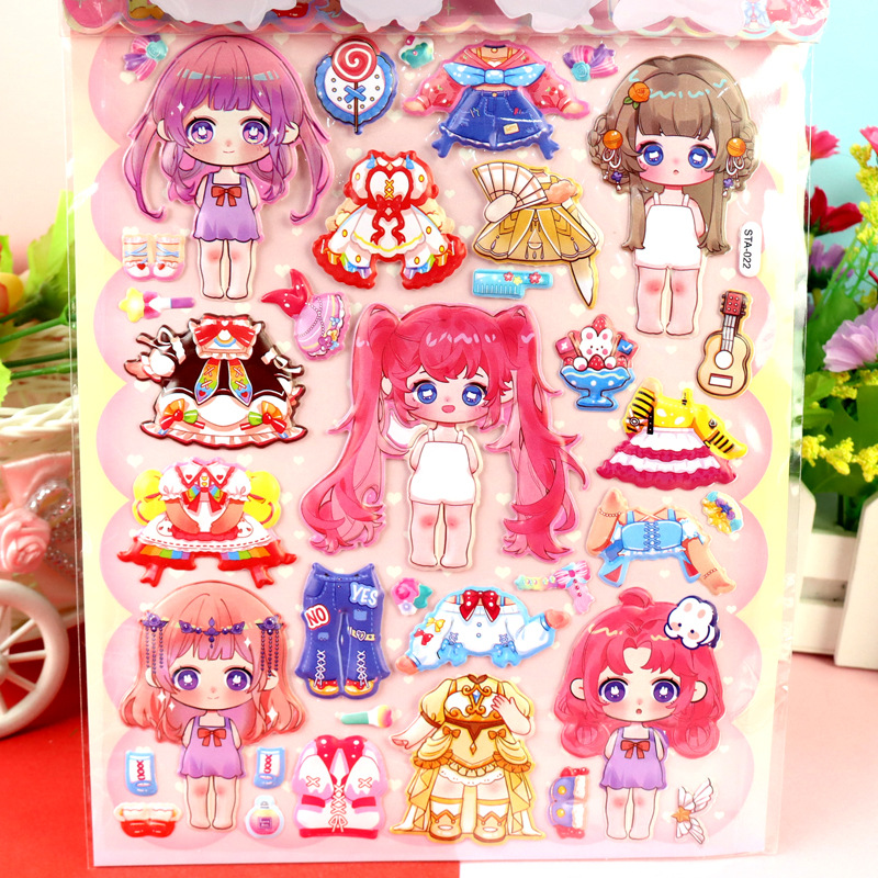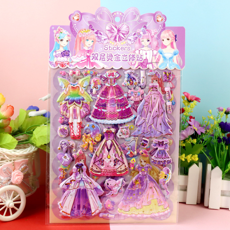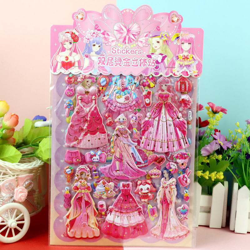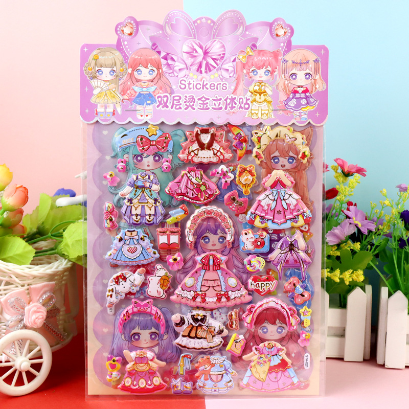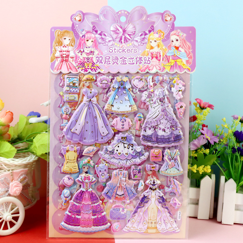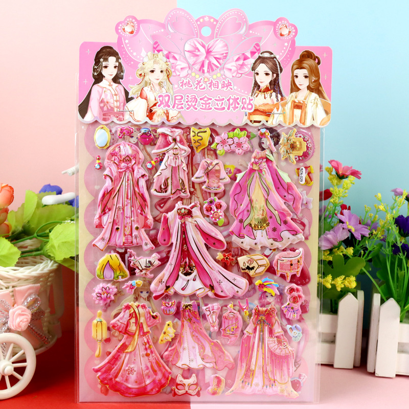 사랑스러운 귀여운 아기 절묘한 소녀 청동 거품 스티커 옷 골동품 스티커 큰 치마 변경 원피스 공주 스티커