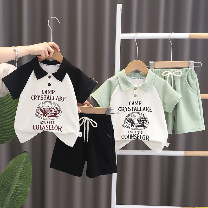 대외 무역 소년의 여름 세트 대조 라 폴로 셔츠 여름 어린이 의류 잘 생긴 패션 아동복 트렌디