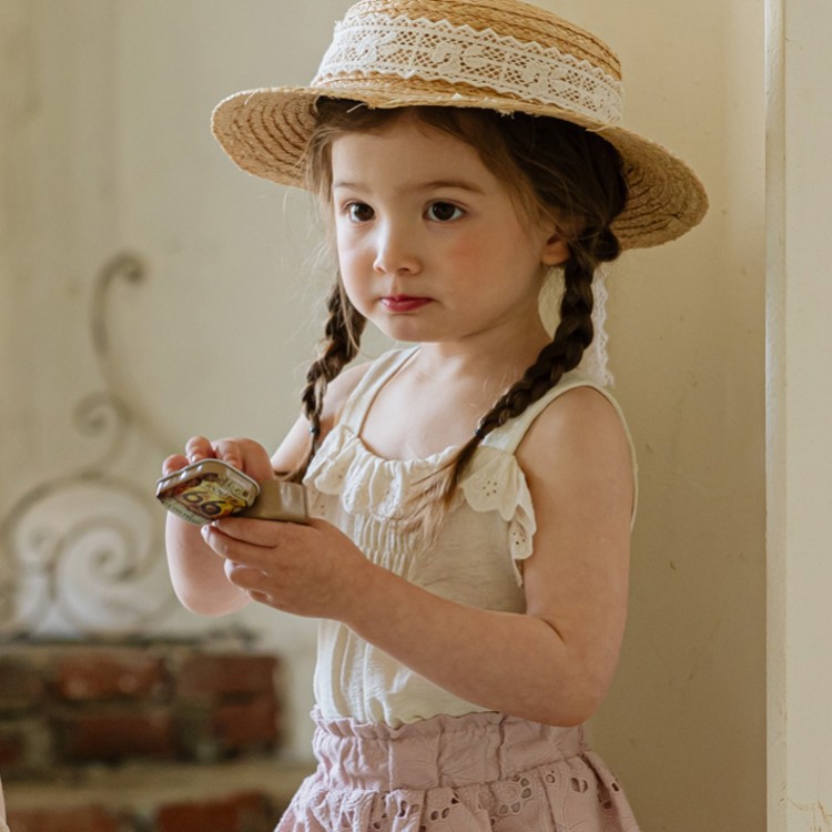 2026 여름 모델 딸기산 한국 여아용 면 레이스 4색 면 소재 부드러운 멜빵조끼 재고 있음