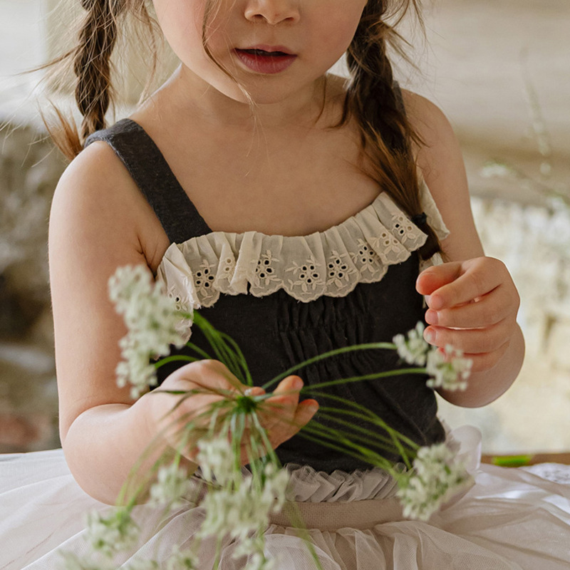 2026 여름 모델 딸기산 한국 여아용 면 레이스 4색 면 소재 부드러운 멜빵조끼 재고 있음스토어 가기