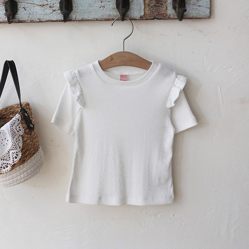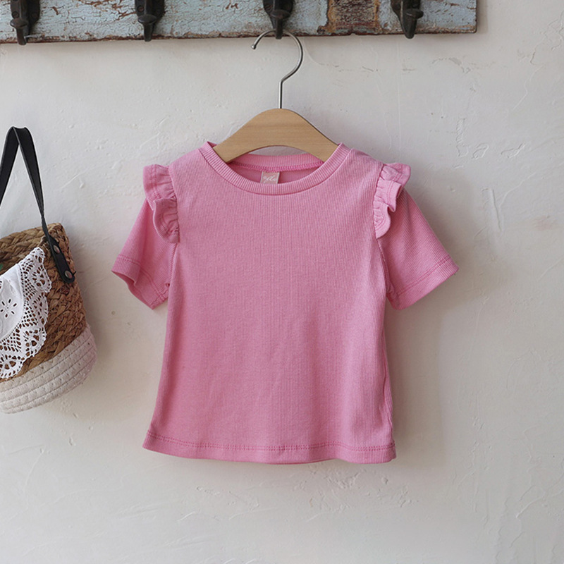 2025 여름 딸기 소녀 소녀 Fei Bian 솔리드 컬러 다목적 탄성 슬림 반팔 티셔츠 바닥 셔츠 재고 있음
