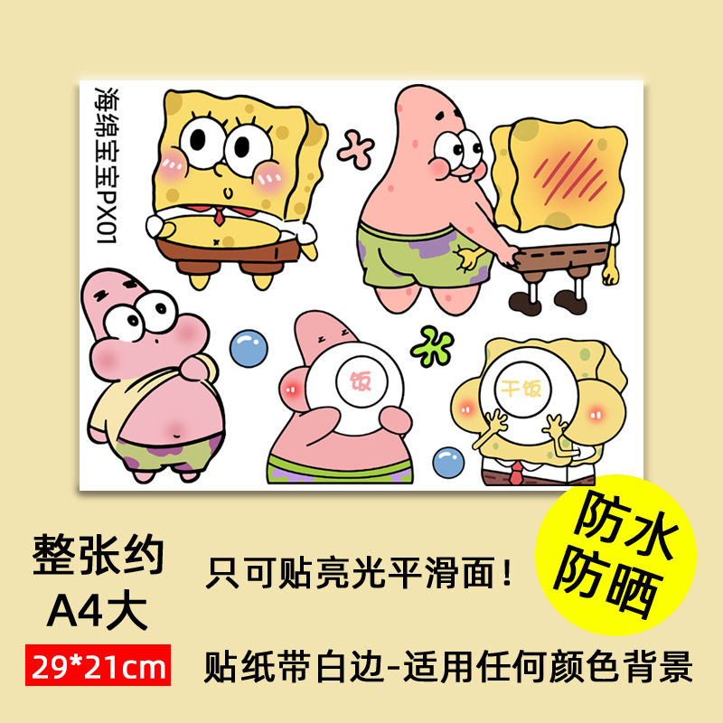 스폰지 밥 패트릭 만화 귀여운 스티커 컴퓨터 성격 스티커 전기 자동차 방수 장식 스크래치 덮개