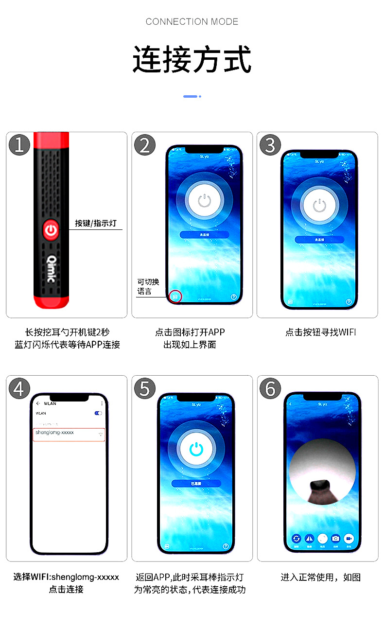 새로운 HD 스마트 비주얼 이어 파는 이어폰 청소 빛나는 귀 파는 wifi 비주얼 이어 파는 내시경스토어 가기