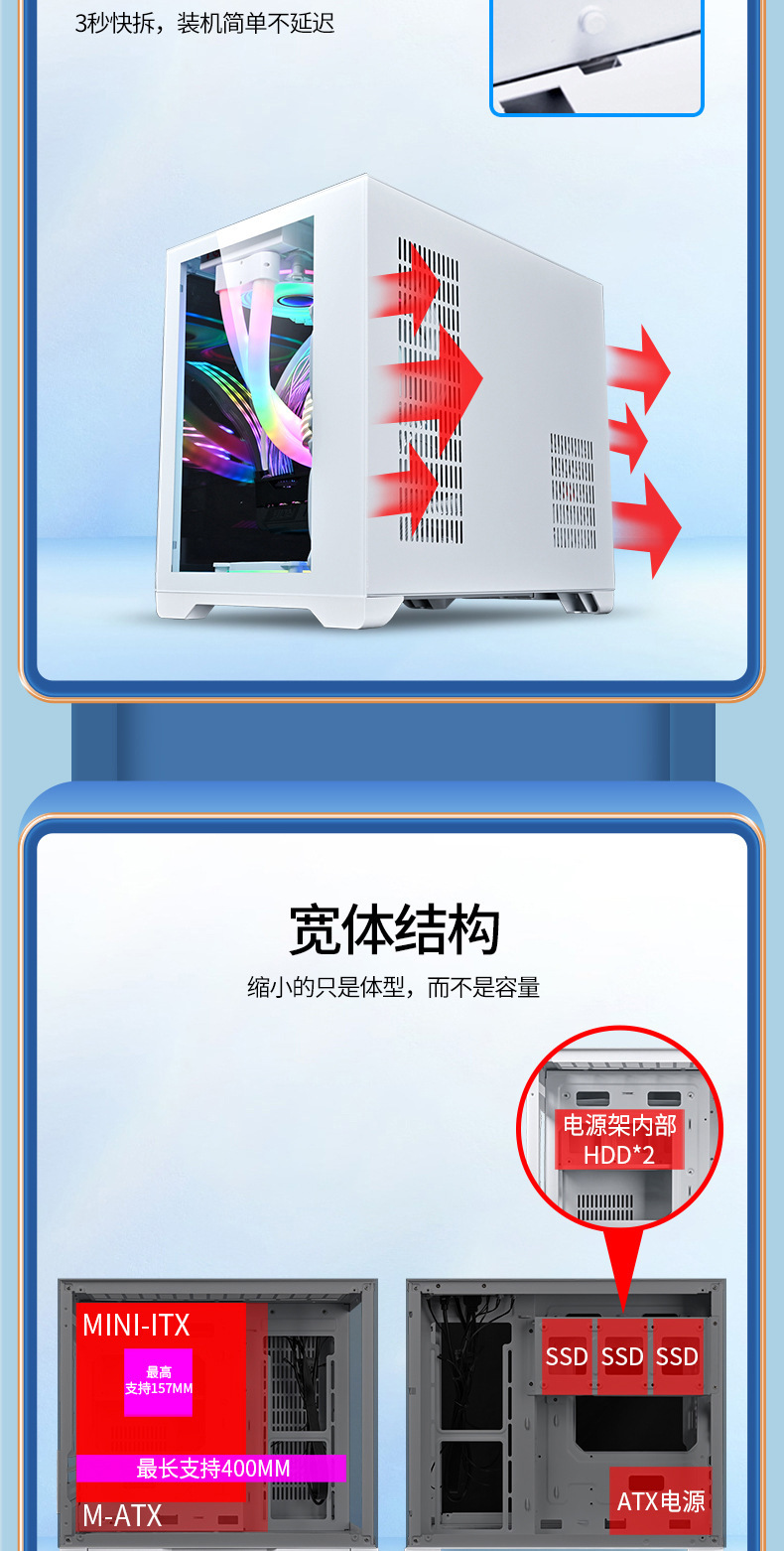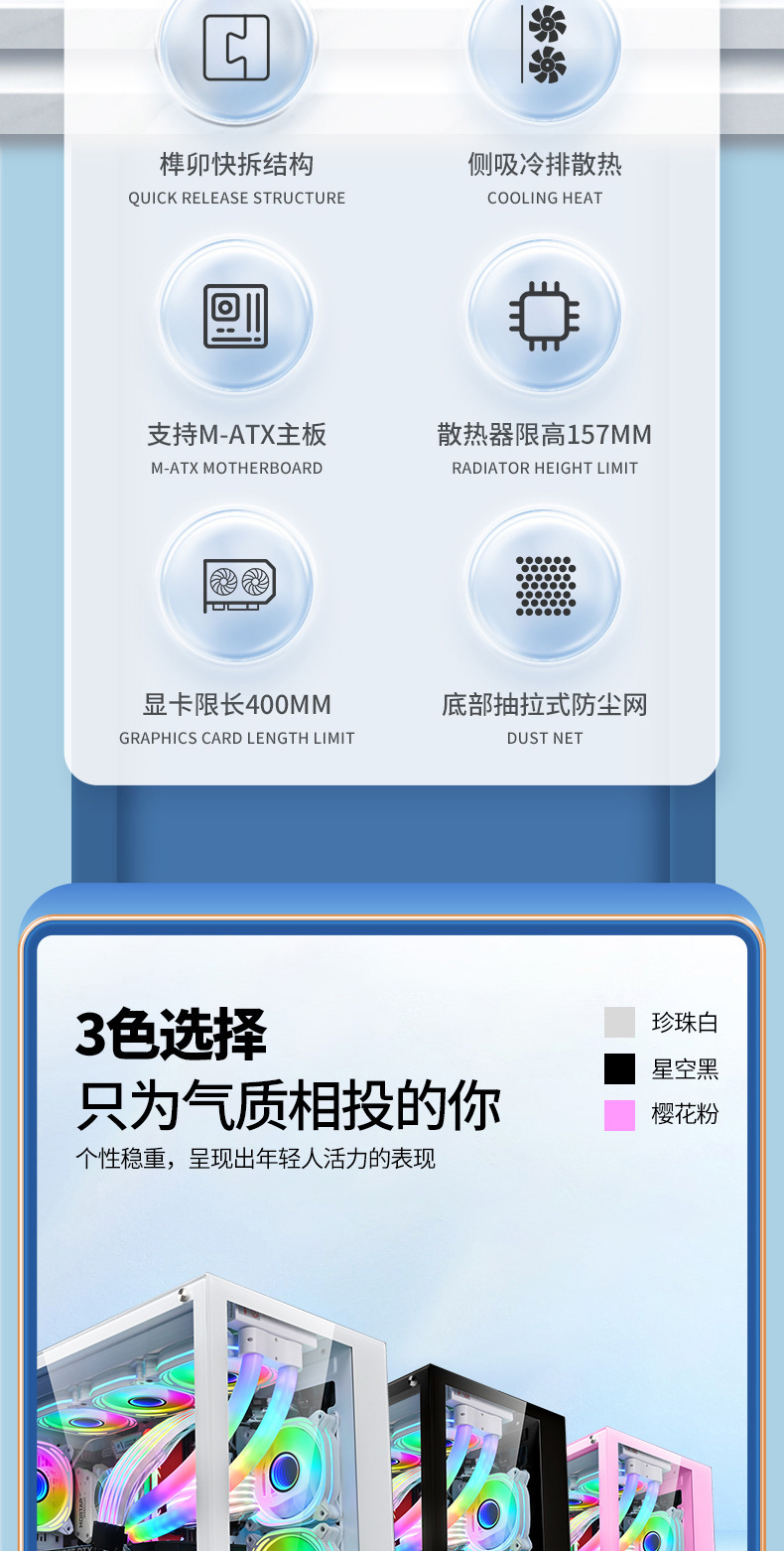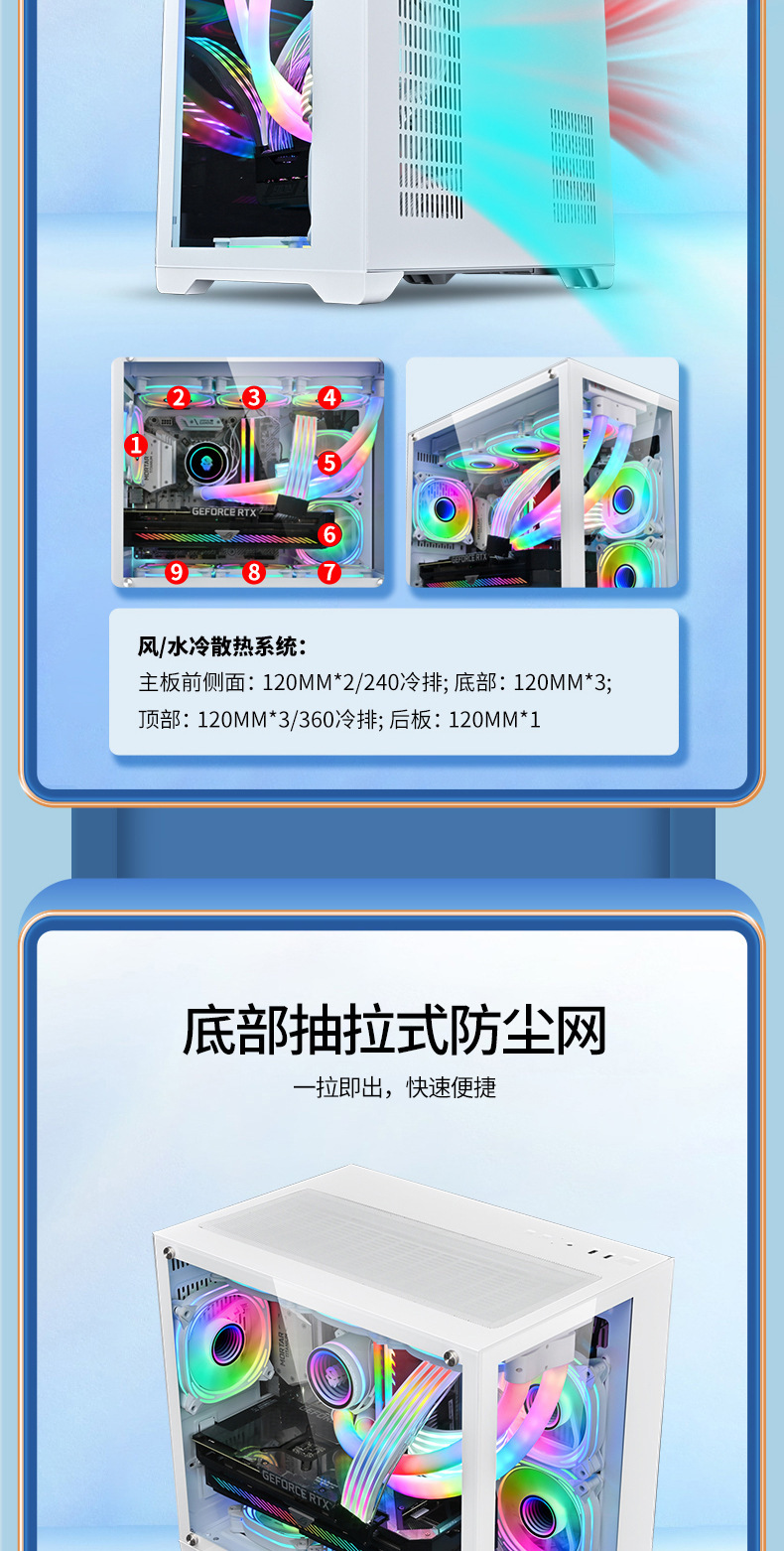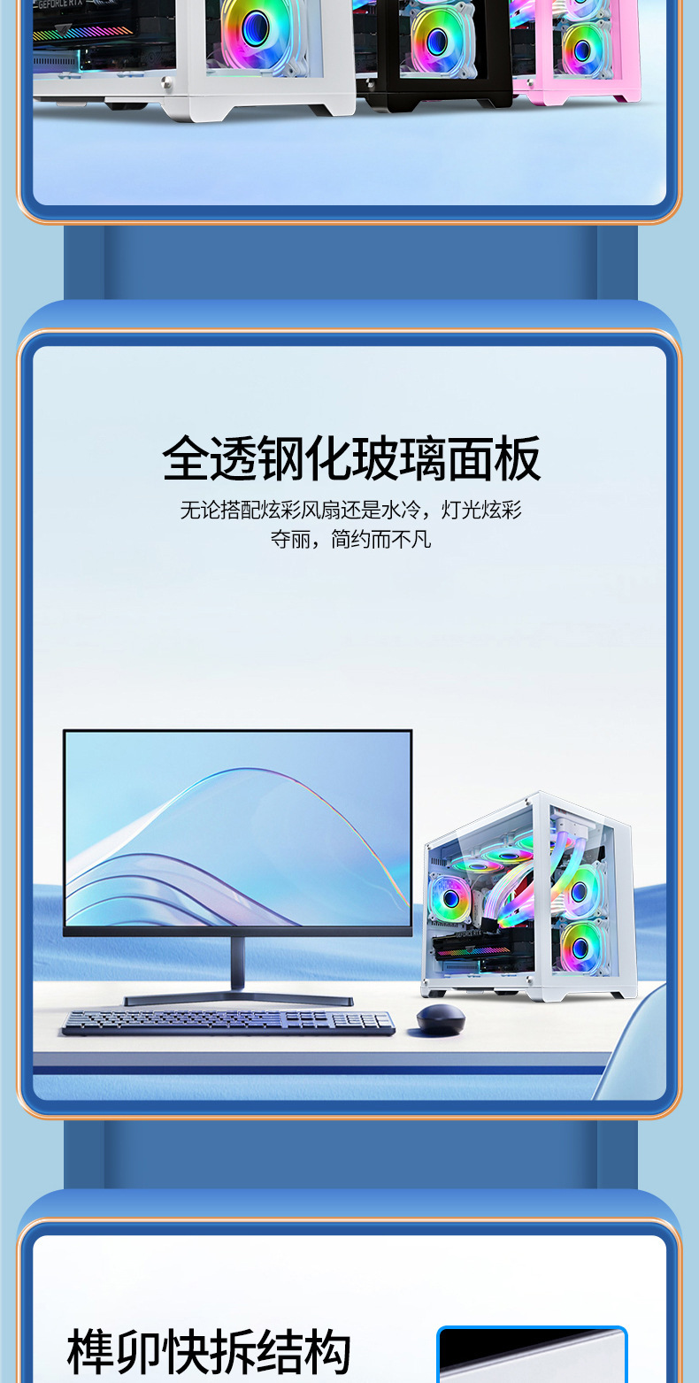 孤勇者电竞界的海景房抽拉式防尘网全透钢化玻璃面板电脑机箱