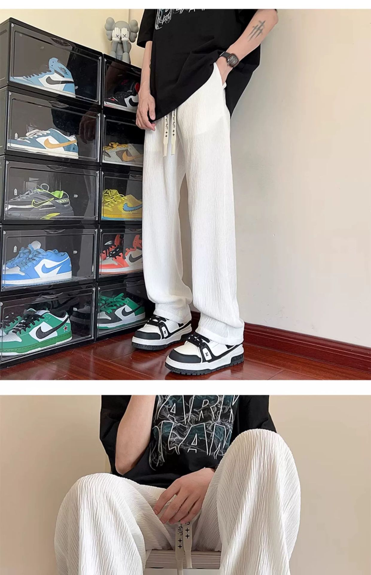 처진 질감 스트레이트 아이스 실크 바지 남자 여름 유행 대형 바지 느슨한 얇은 시원한 바지스토어 가기