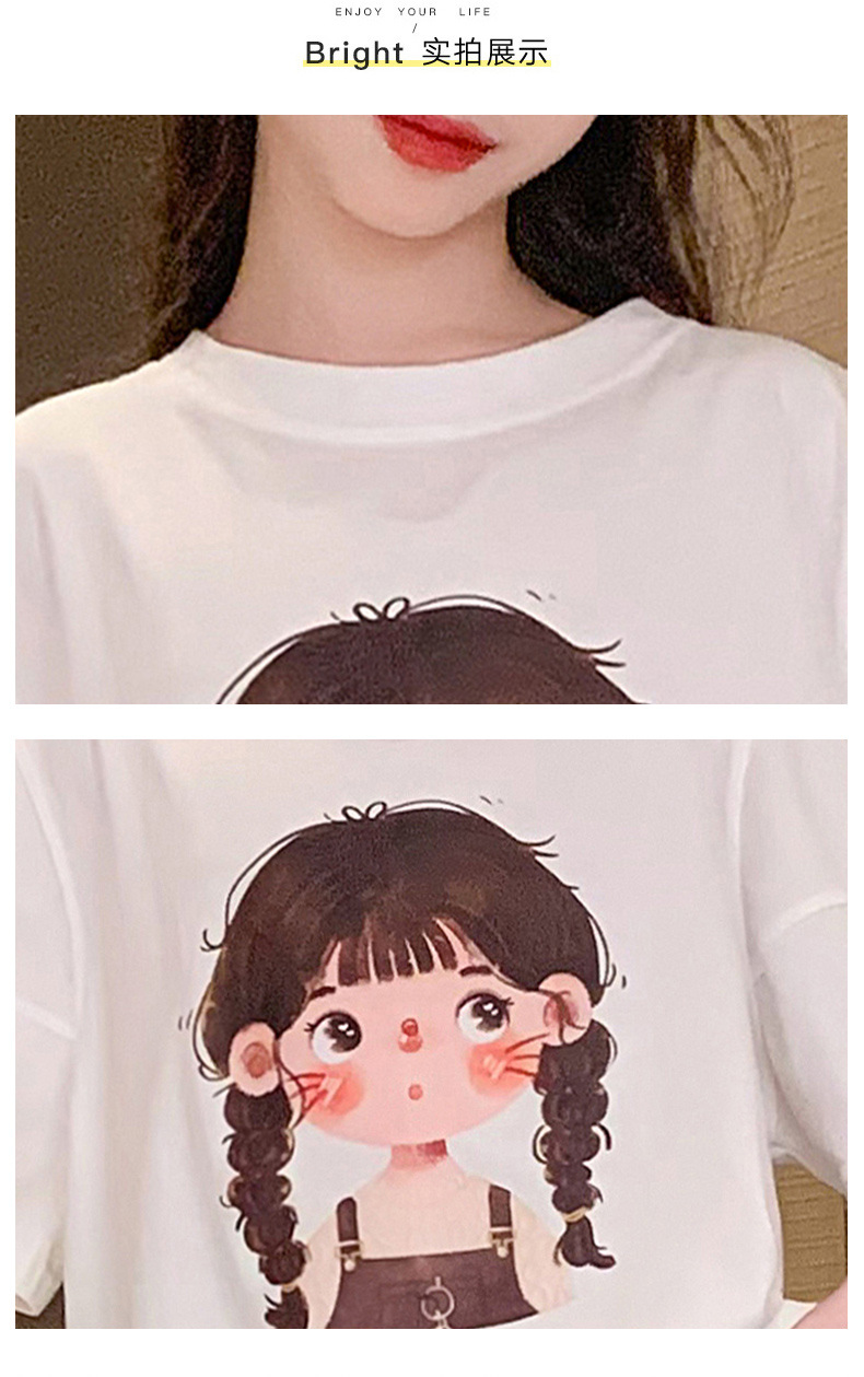 소녀의 패션 여름 투피스 세트 2024 새로운 고등학교 만화 소녀의 중학생을위한 반팔 와이드 레그 바지 세트스토어 가기
