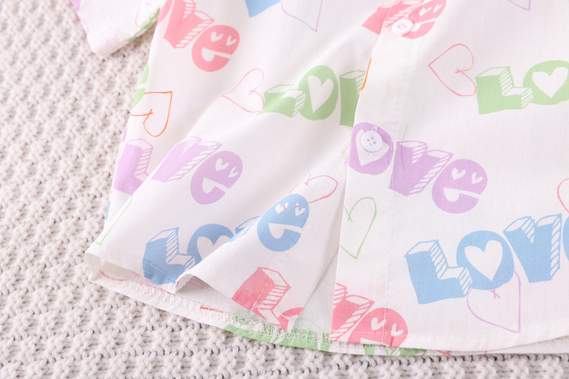 소년 셔츠 반팔 여름 세트 여름 새로운 패션 중소 어린이 아기 전체 인쇄 편지 반팔 세트 트렌디