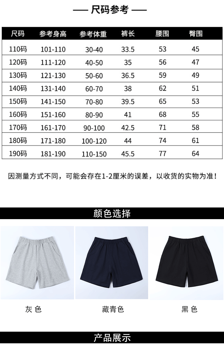 여름 얇은 순수한 흰색 반바지 소년 소녀 다크 블루 스포츠 바지 초등 및 중등 학교 학생을위한 회색 학교 유니폼 바지스토어 가기
