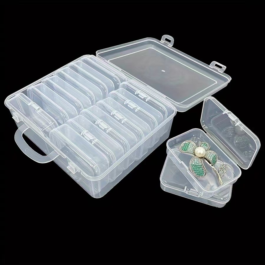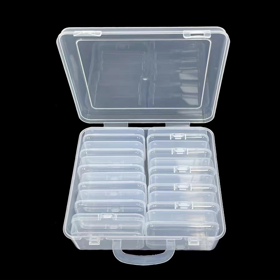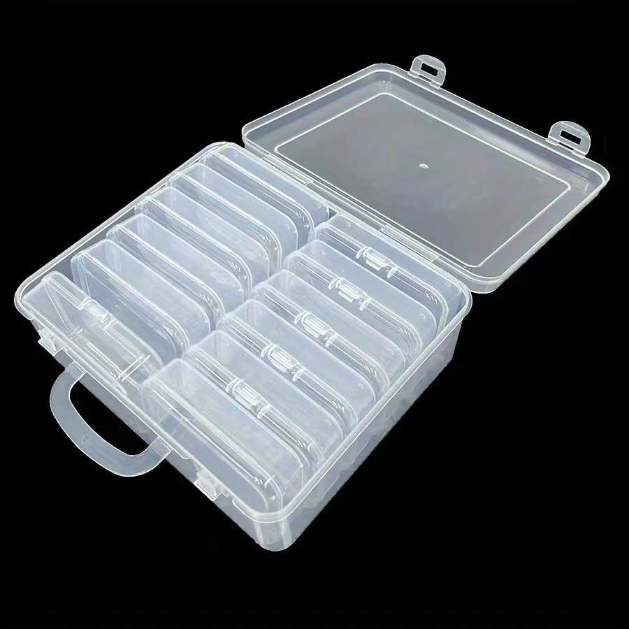 뚜껑이있는 간단한 대용량 저장 상자 투명 플라스틱 보석 상자 멀티 그리드 보석 상자 저장 상자 12-그리드 15-그리드 상자