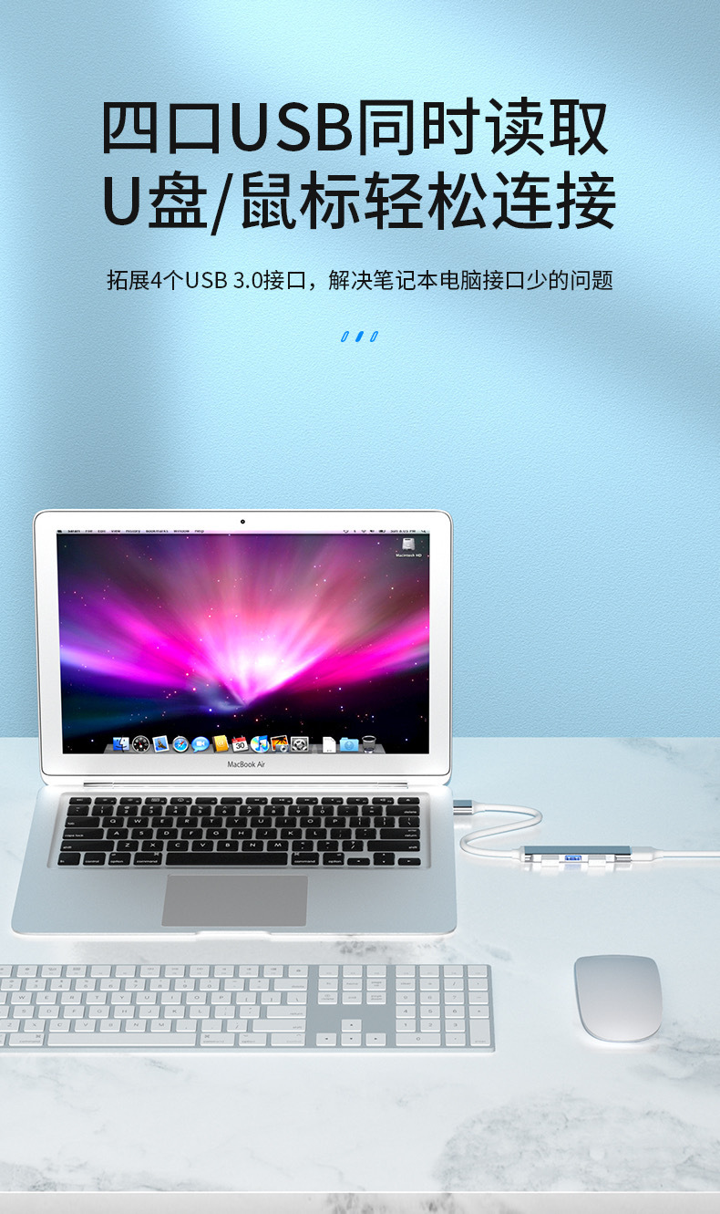 Usb3.0 익스텐더 스플리터 타입-c 멀티 포트 노트북 전송 1 대 4 USB 확장 도크 허브