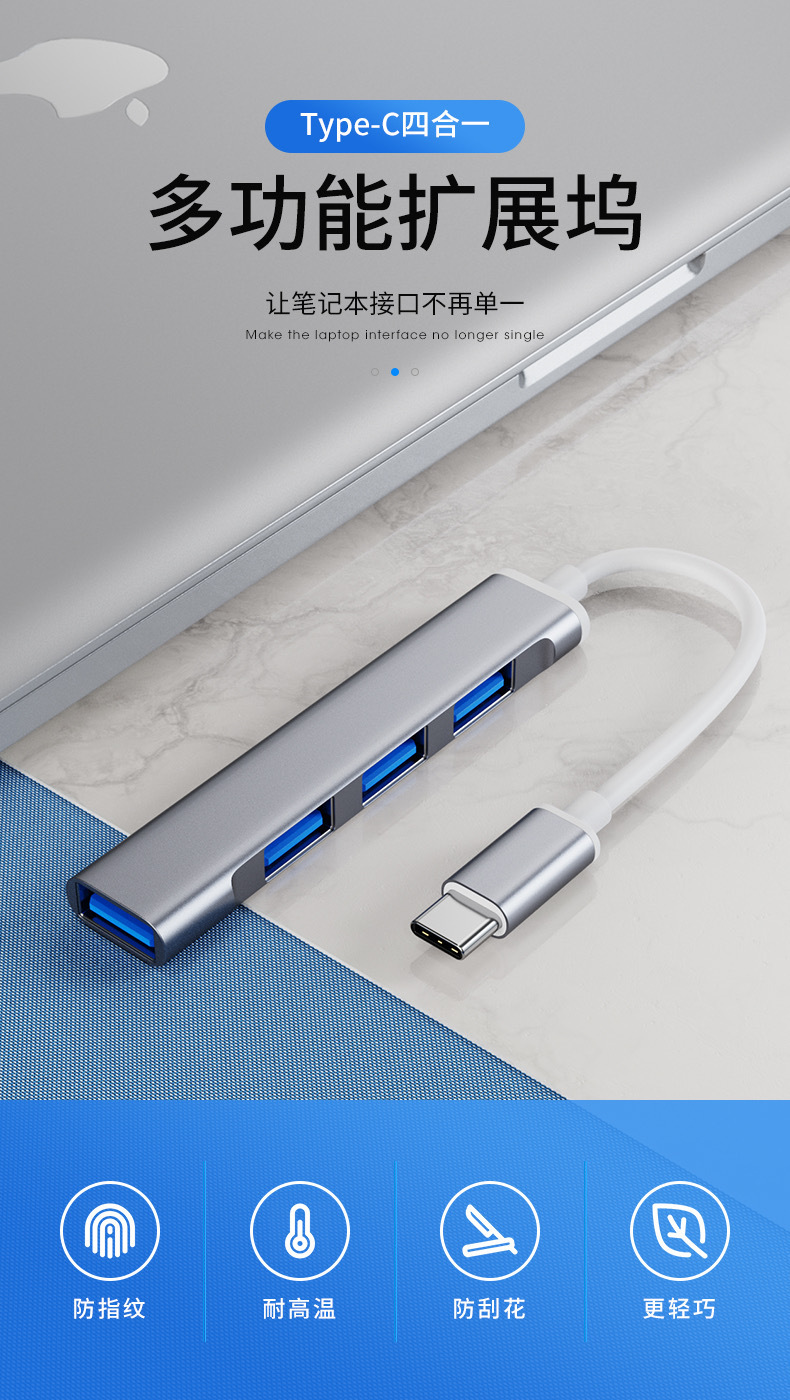 Usb3.0 익스텐더 스플리터 타입-c 멀티 포트 노트북 전송 1 대 4 USB 확장 도크 허브스토어 가기