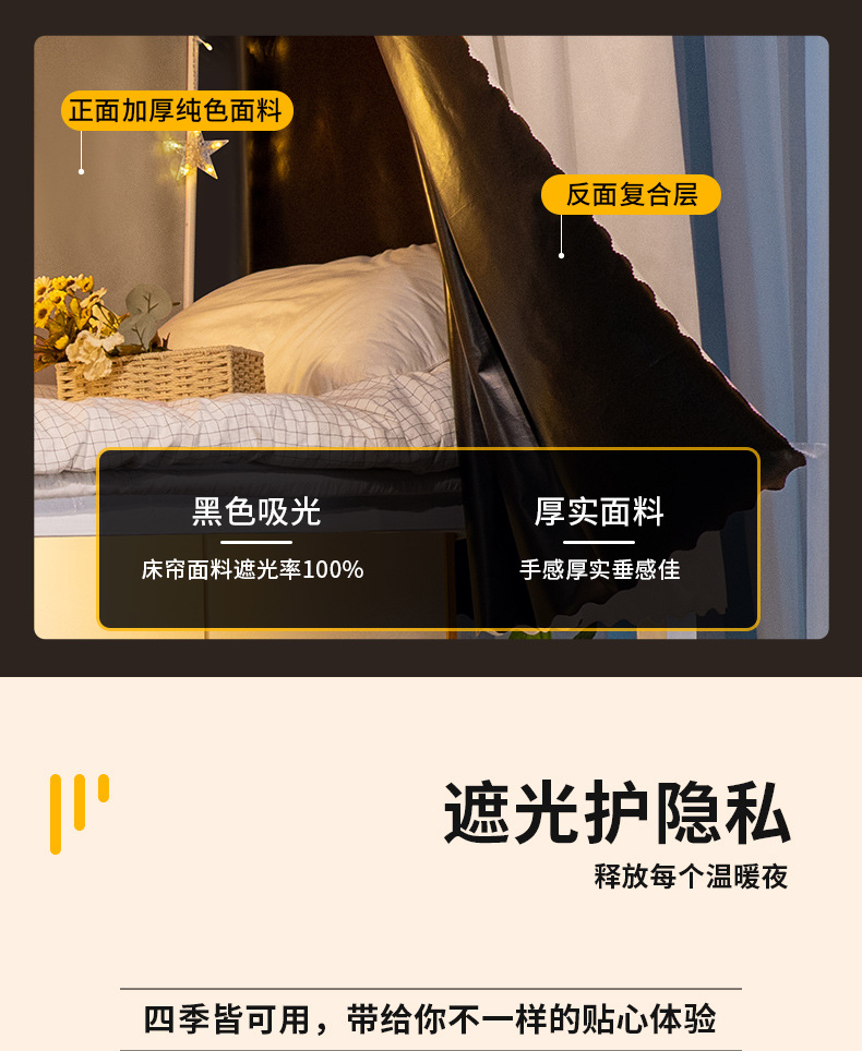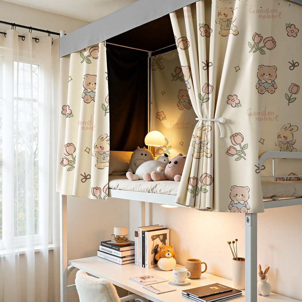 학생용 빛 차단 침대 커튼, 대학생용 이층 침대, 기숙사용 커튼, 침대 커튼, 올인원 기숙사 커튼