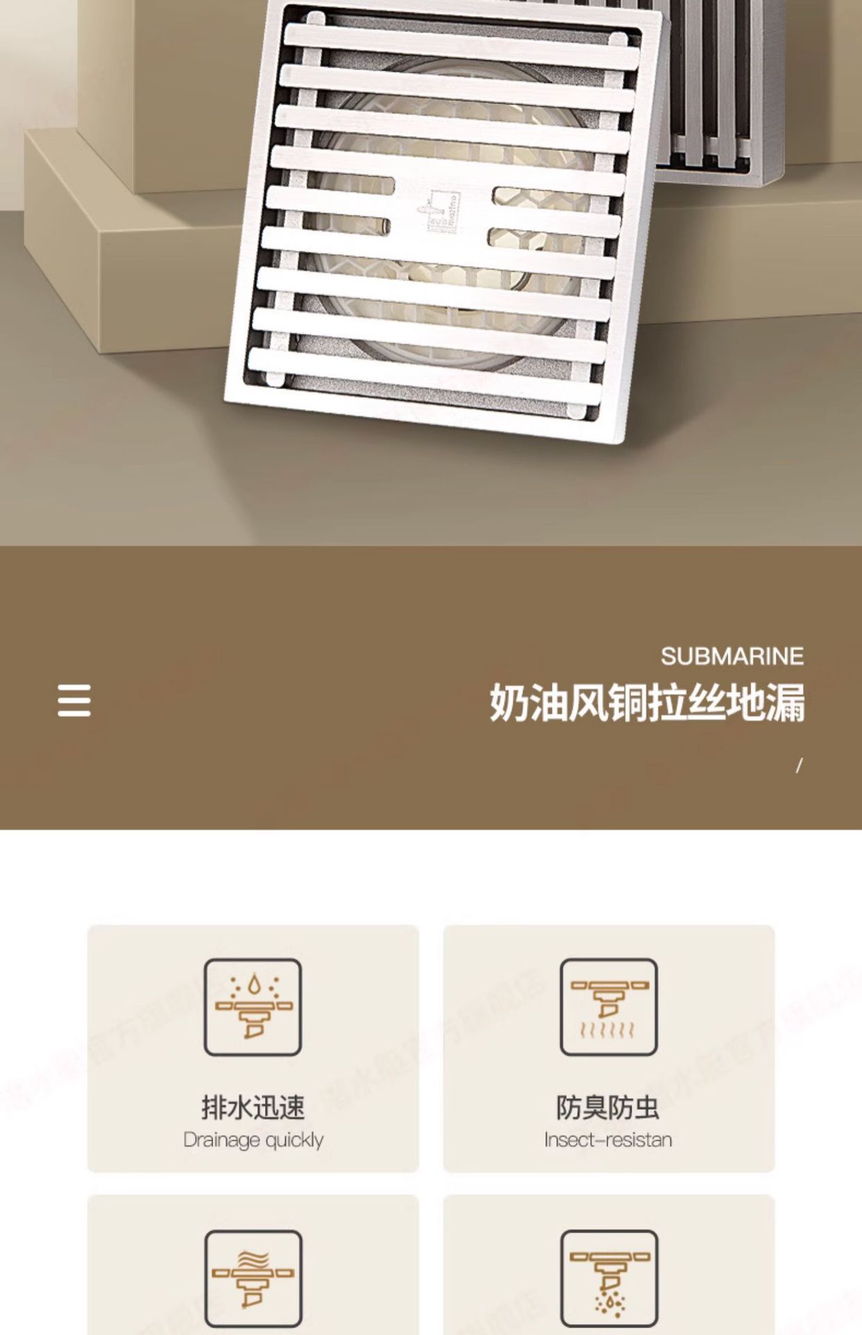모든 구리 바닥 배수구 화장실 세탁기 샤워 구리 바닥 배수구 실버 밀폐된 잠수함 크림 바람스토어 가기